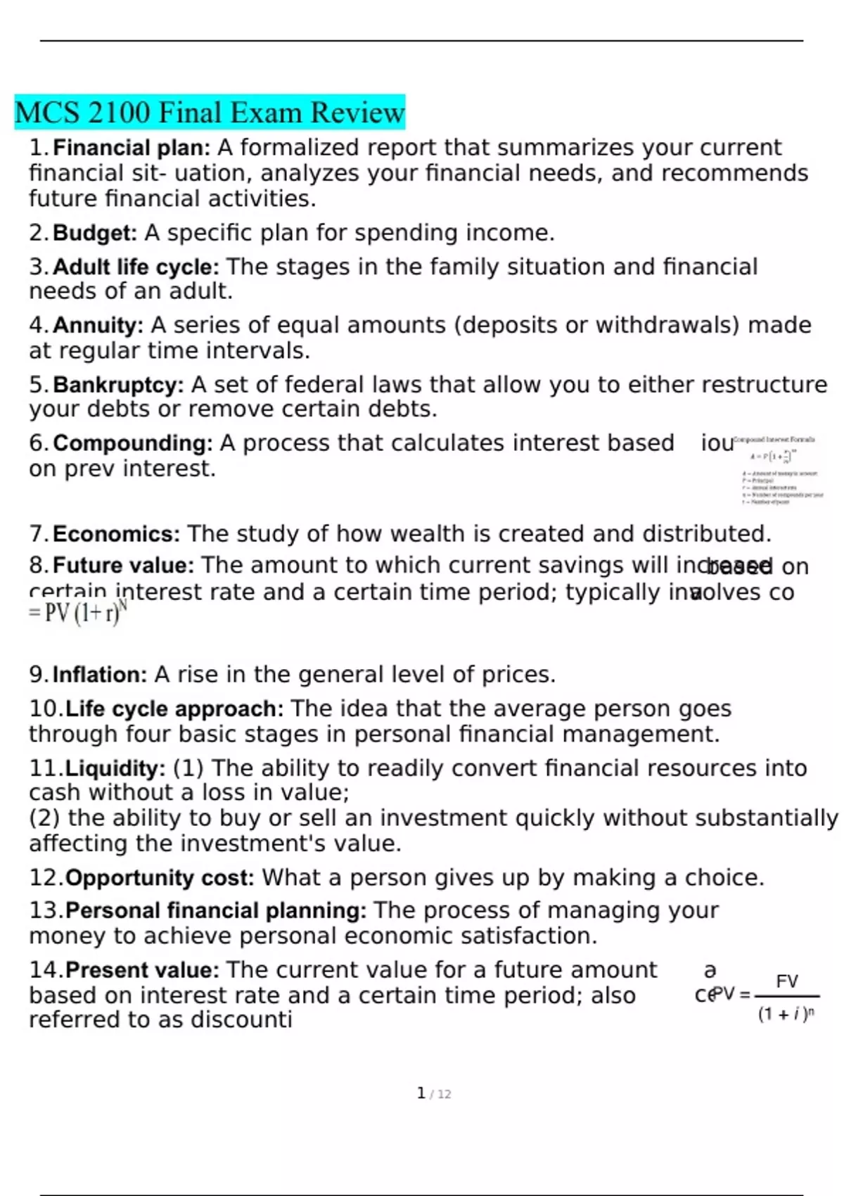 personal finance mcs 2100 exam review quizzes