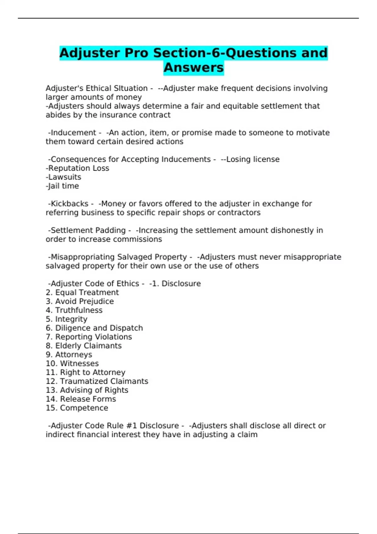 Adjuster Pro Section-6-Questions and