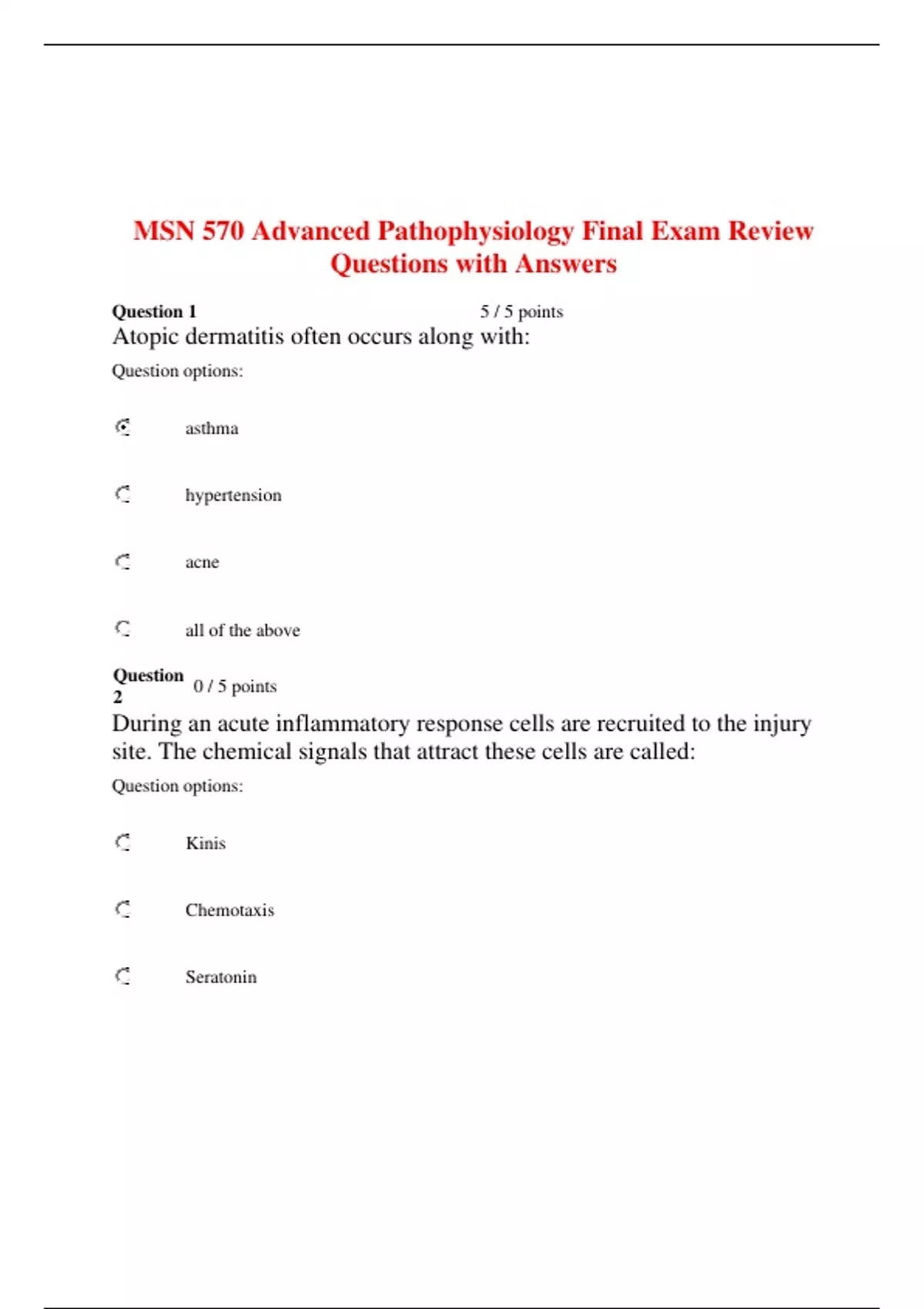 MSN 570 Advanced Pathophysiology Final Exam Questions with Answers 2023