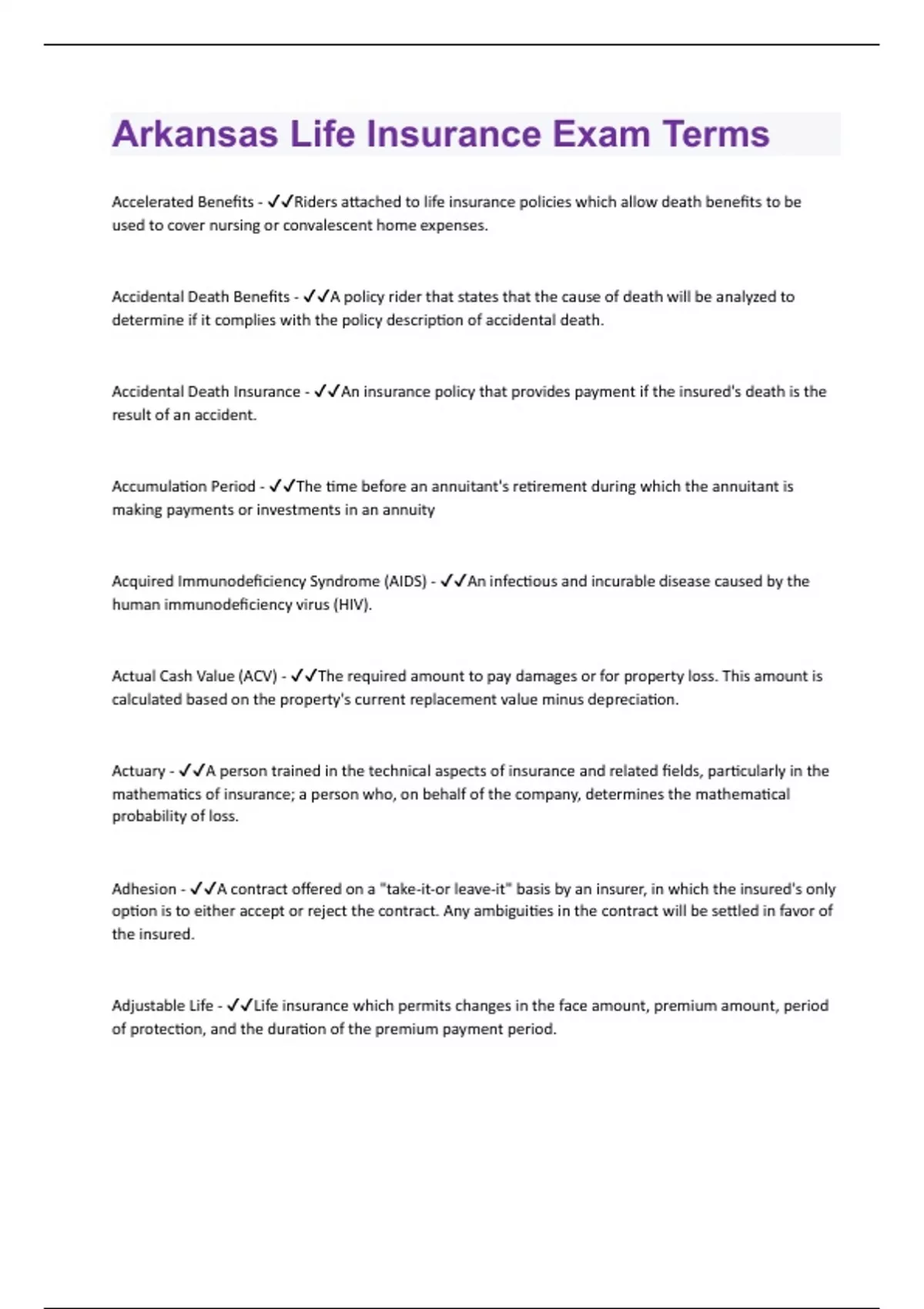 Arkansas Life Insurance | Questions and Answers with complete solution