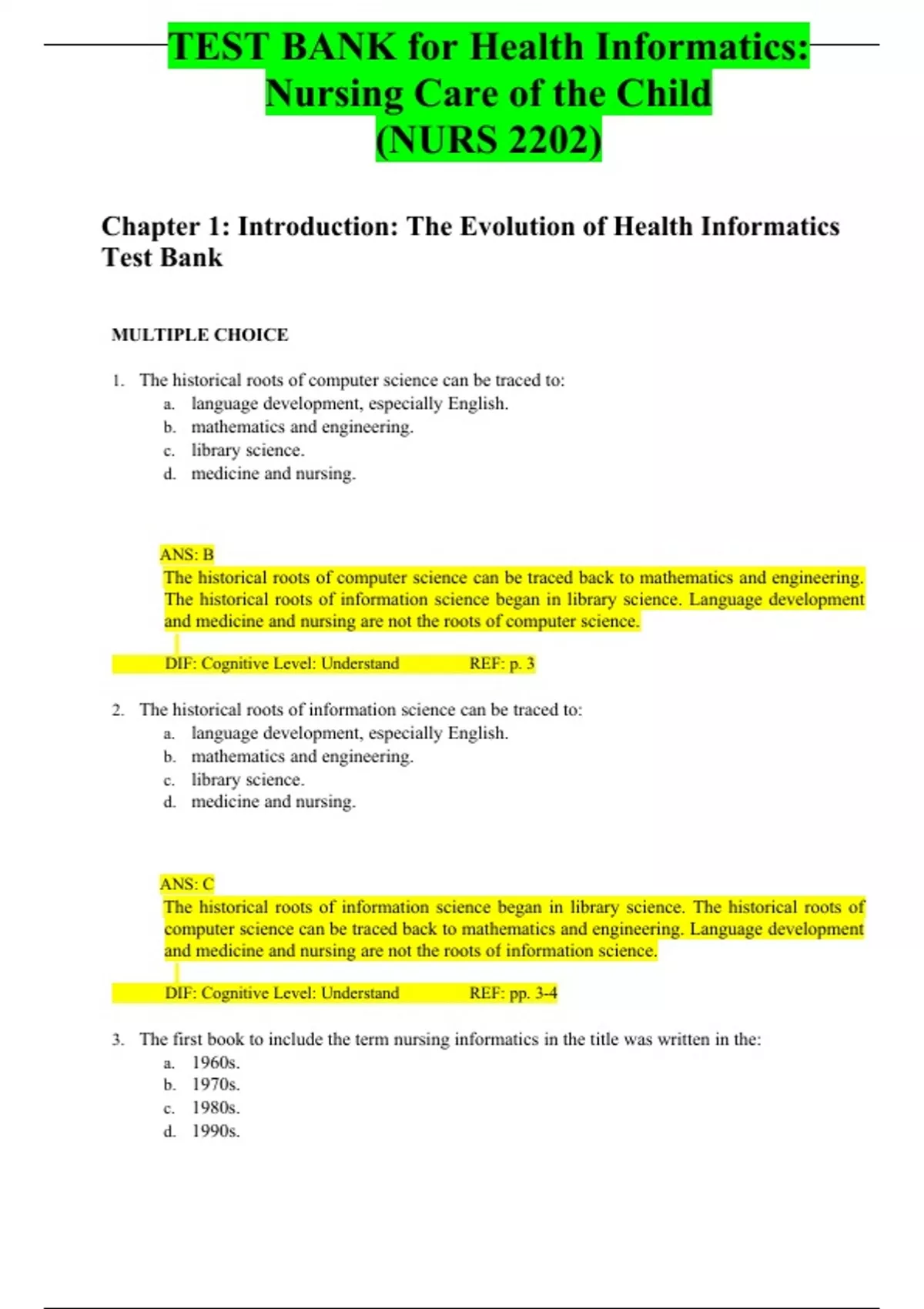 TEST BANK for Health Informatics: Nursing Care of the Child (NURS 2202)