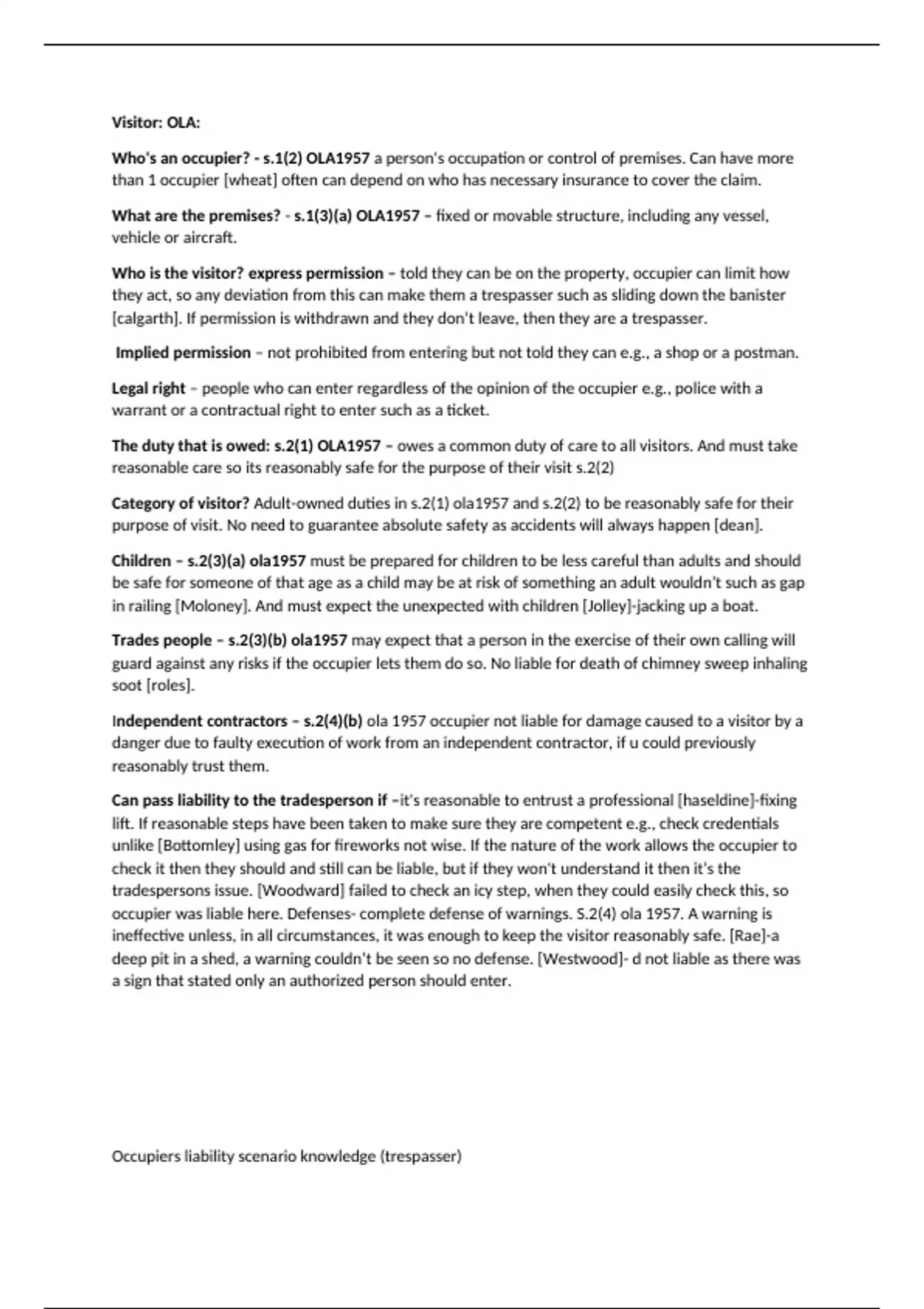 Who's an occupier? - s.1(2) OLA1957 a person's occupation or control of premises. Can have more