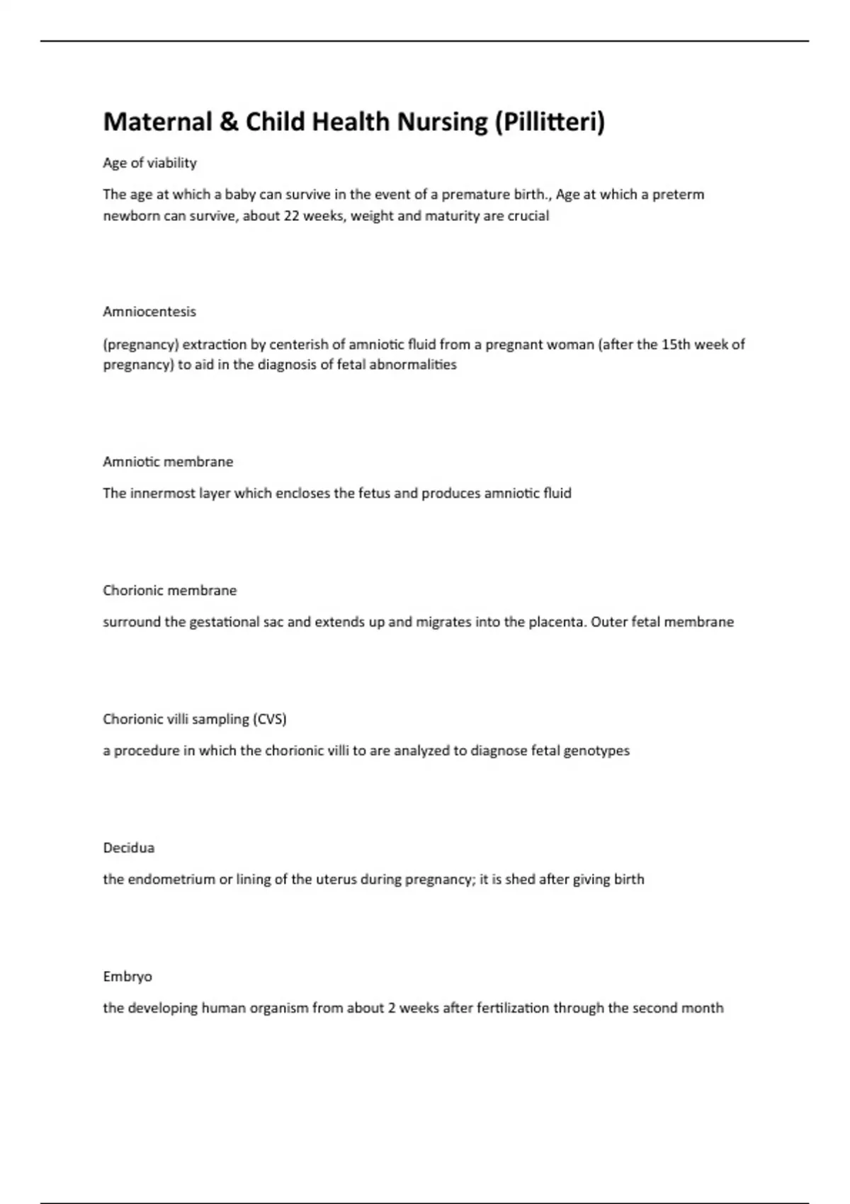 Age of viability The age at which a baby can survive in the event of a premature birth., Age at which a preterm newborn can survive, about 22 weeks, weight and maturity are crucial Amniocentesis (pregnancy) extraction by centerish of amniotic fluid from a pregnant woman (after the 15th week of pregnancy) to aid in the diagnosis of fetal abnormalities Amniotic membrane The innermost layer which encloses the fetus and produces amniotic fluid Chorionic membrane surround the gestational sac and extends up and migrates into the placenta. Outer fetal membrane