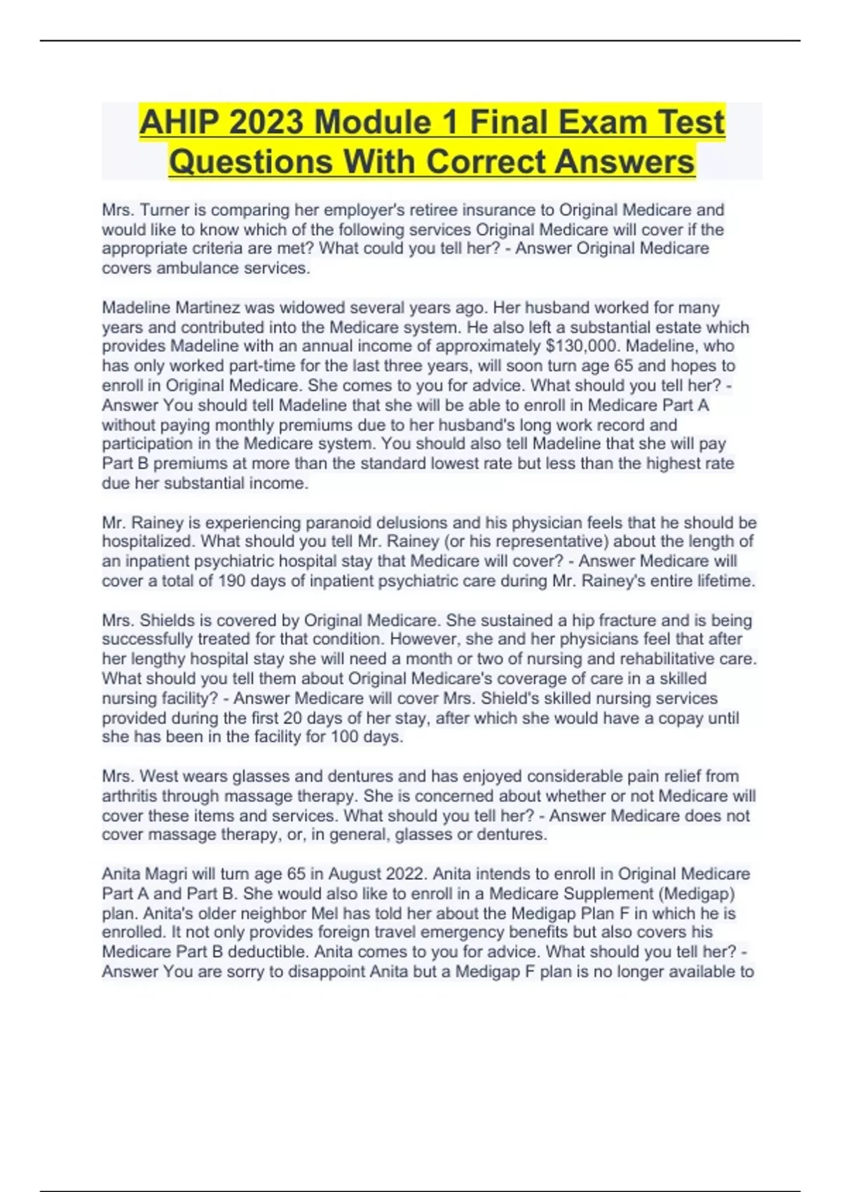 AHIP 2023 Module 1 Final Exam Test Questions With Correct Answers