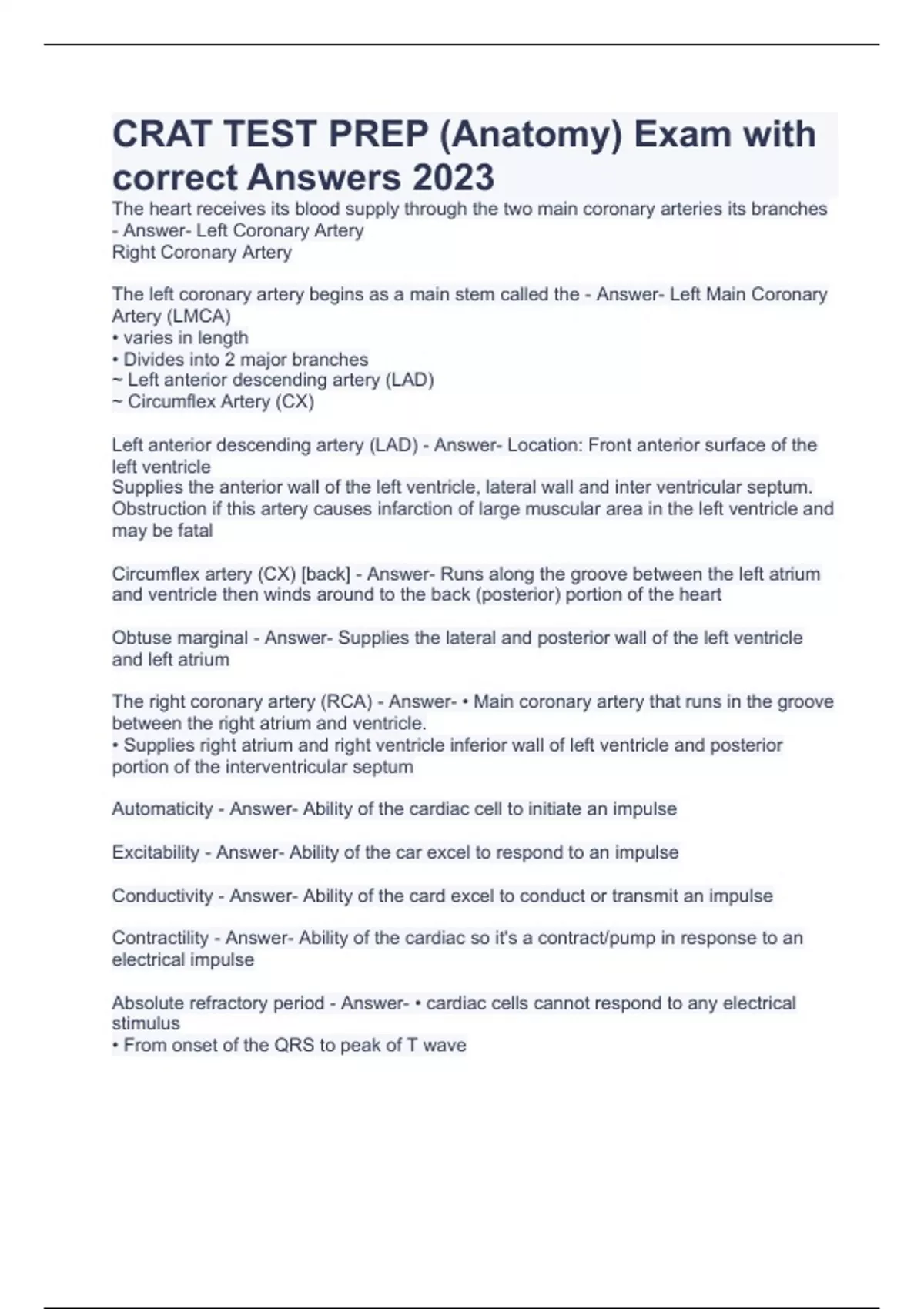 CRAT TEST PREP (Anatomy) Exam with correct Answers 2023