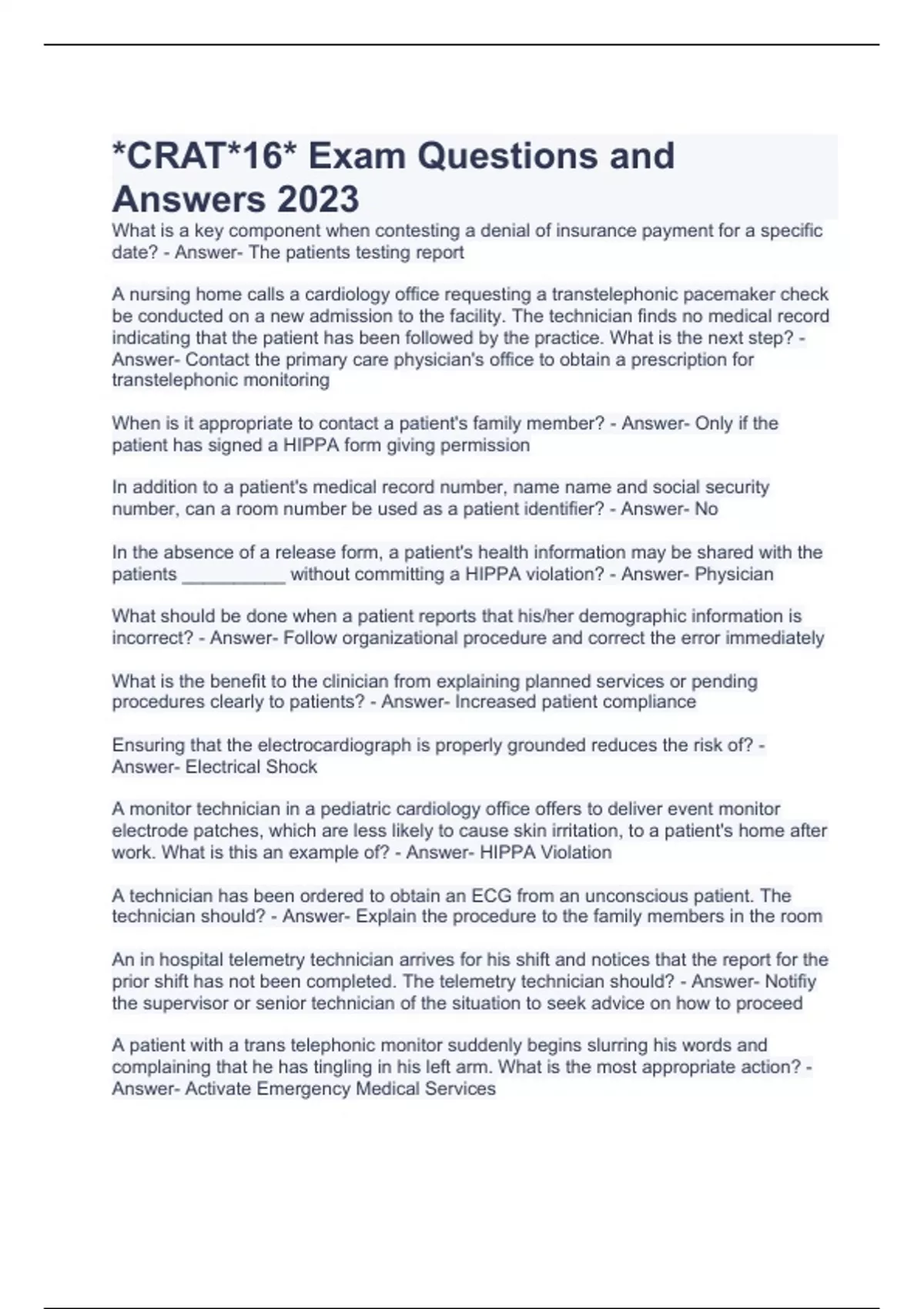 *CRAT*16* Exam Questions and Answers 2023
