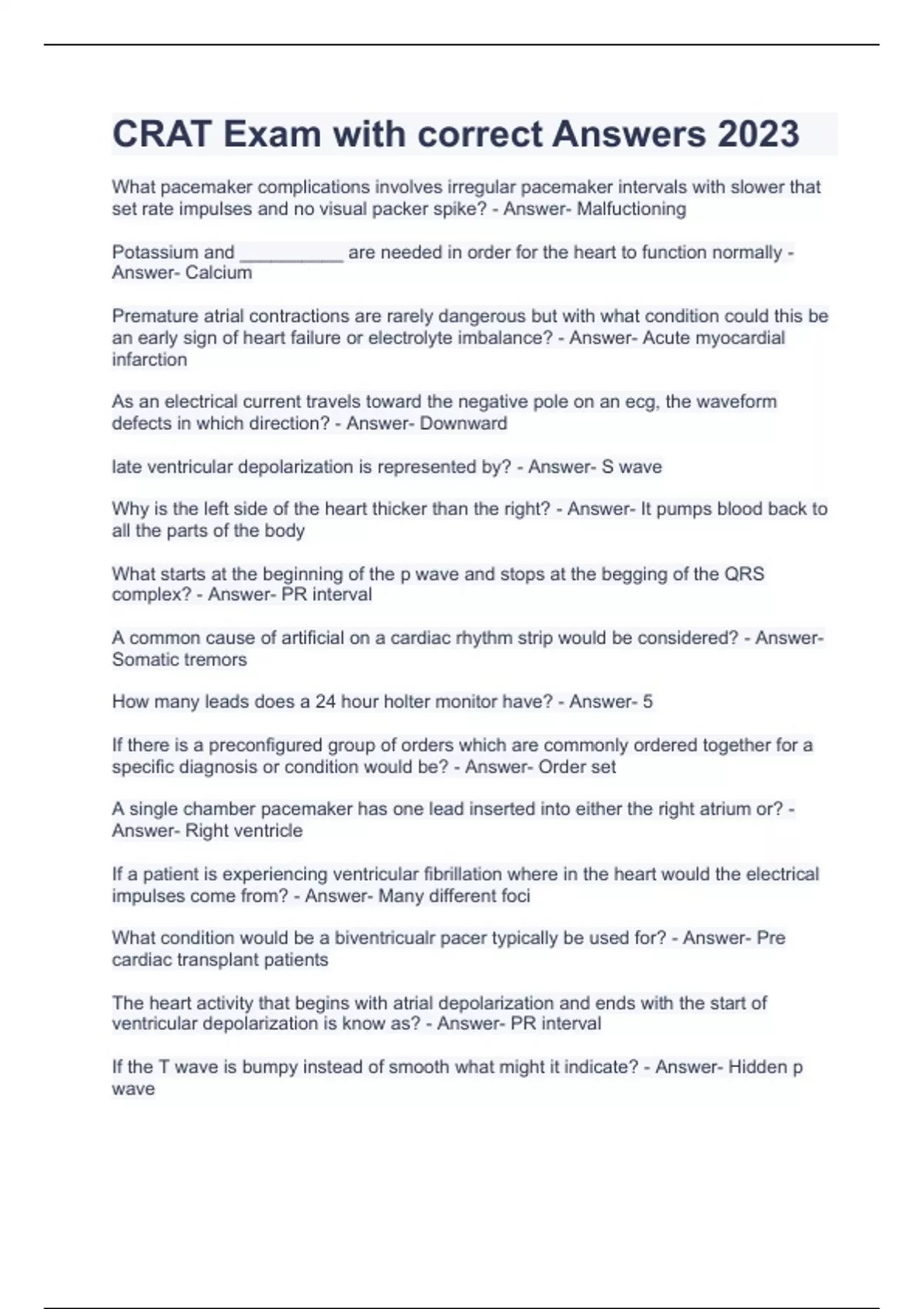 crat exam with correct answers 2023