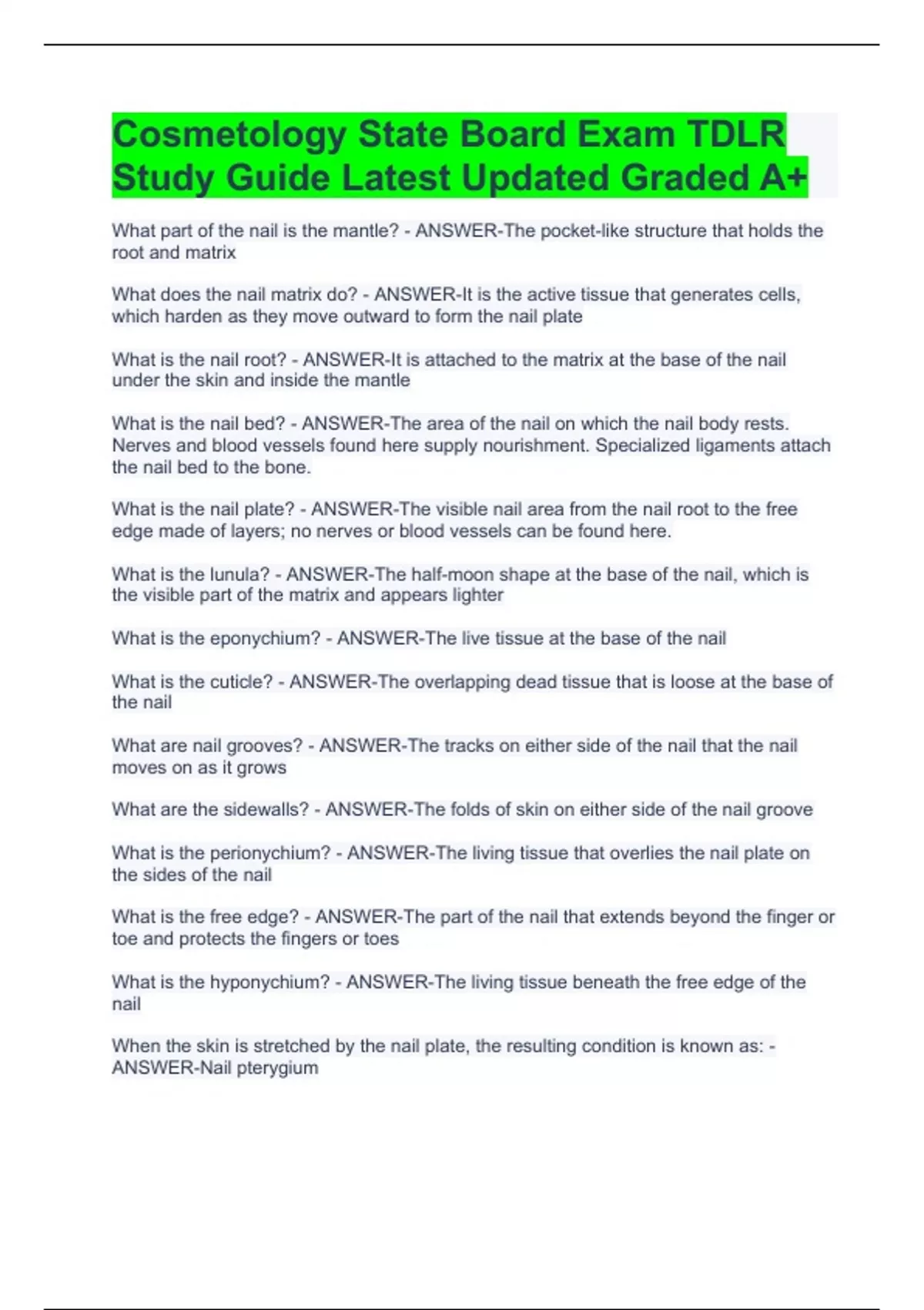 Cosmetology State Board Exam TDLR Study Guide Latest Updated Graded A+