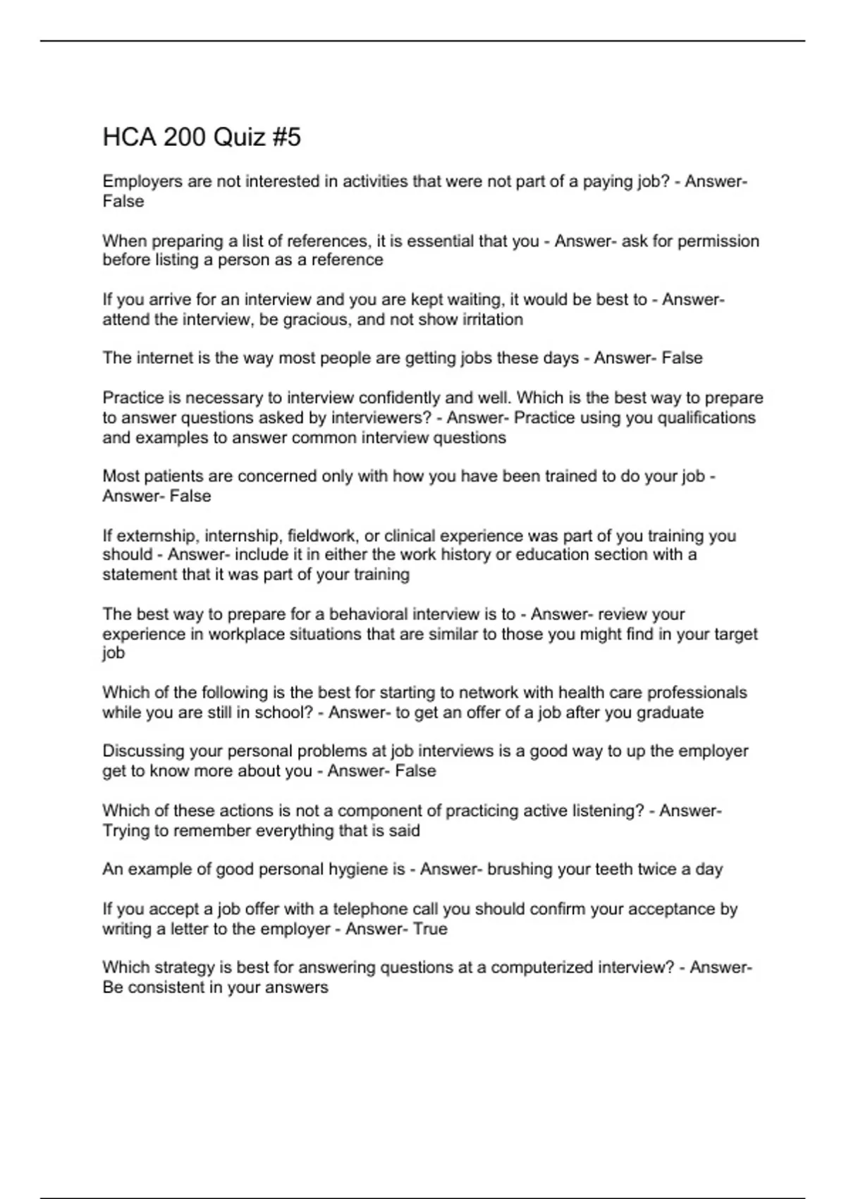 Which strategy is best for answering questions at a computerized interview? - Answer- Be consistent in your answers