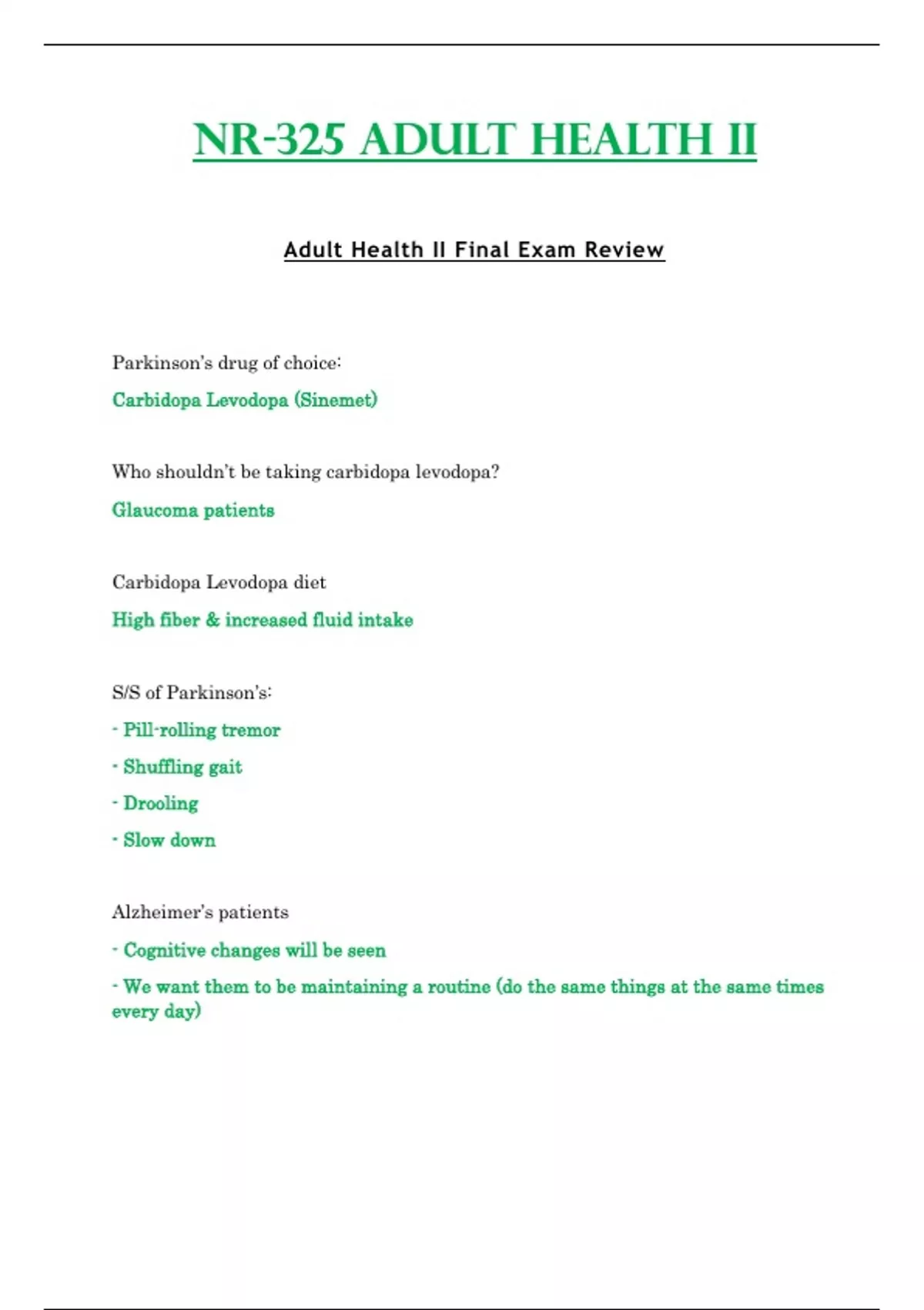 Final Exam Review - NR325 / NR 325 (Latest 2023 / 2024) : Adult Health II - Chamberlain
