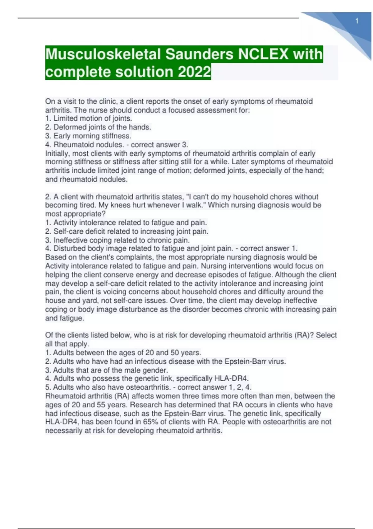 musculoskeletal saunders nclex withcomplete soluti