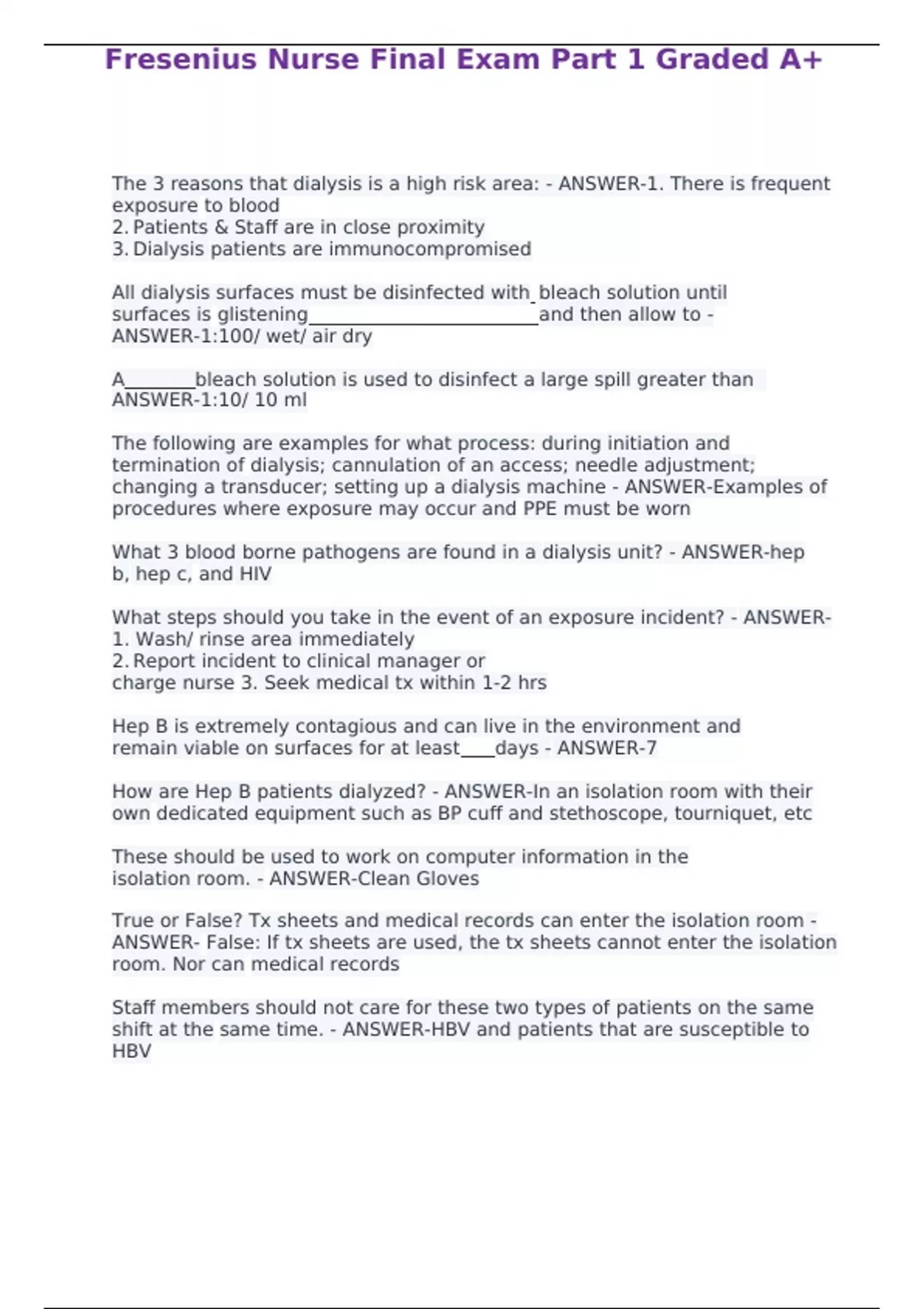 Fresenius Nurse Final Exam Part 1 Graded A+