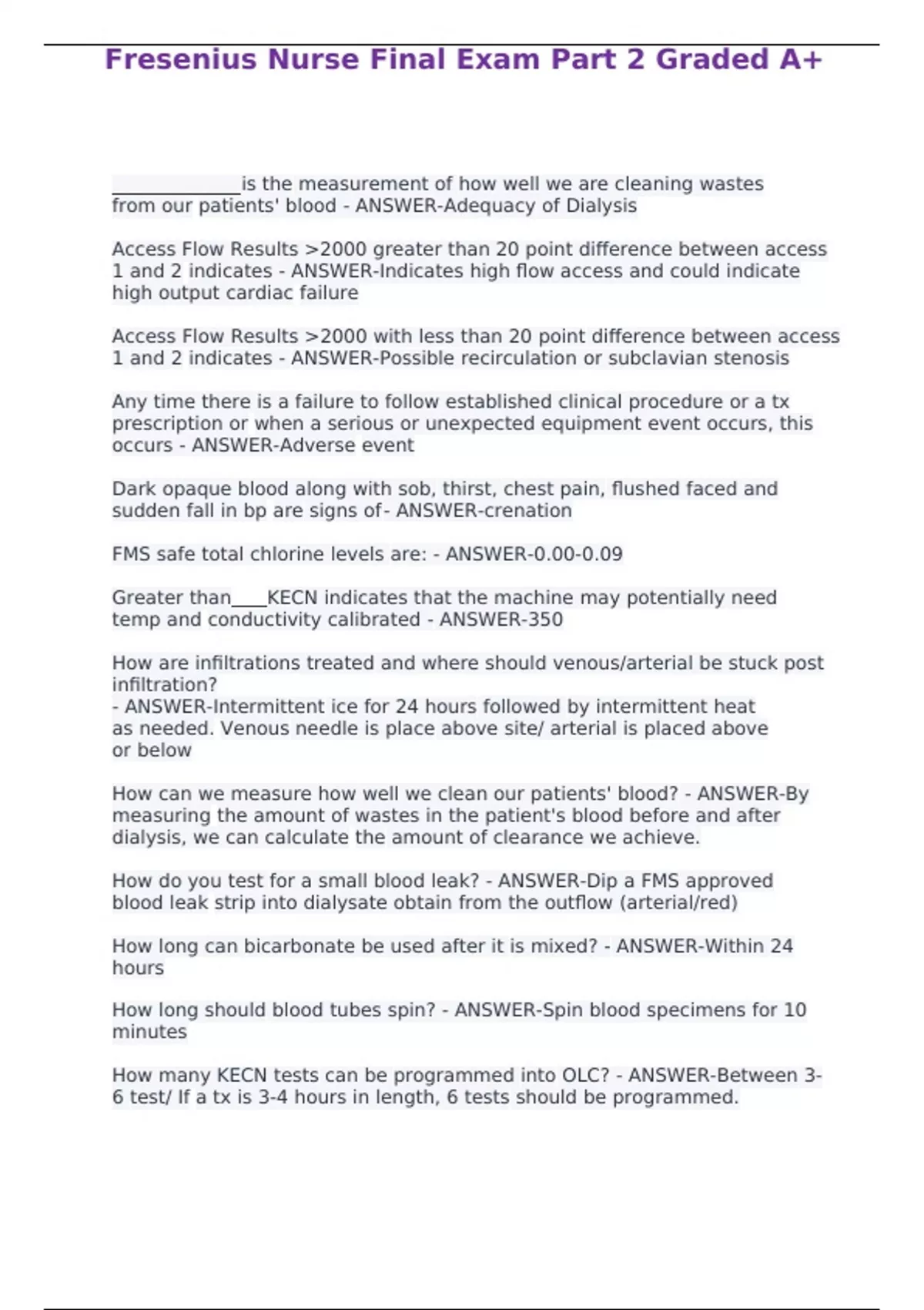 Fresenius Nurse Final Exam Part 2 Graded A+