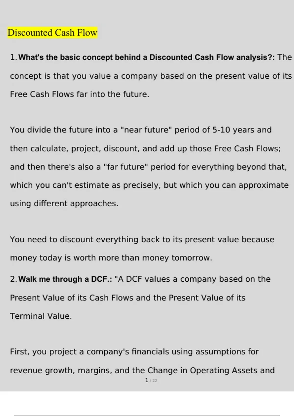 Discounted Cash Flow Summary Questions and Answers Latest (2023 / 2024) (Verified Answers)