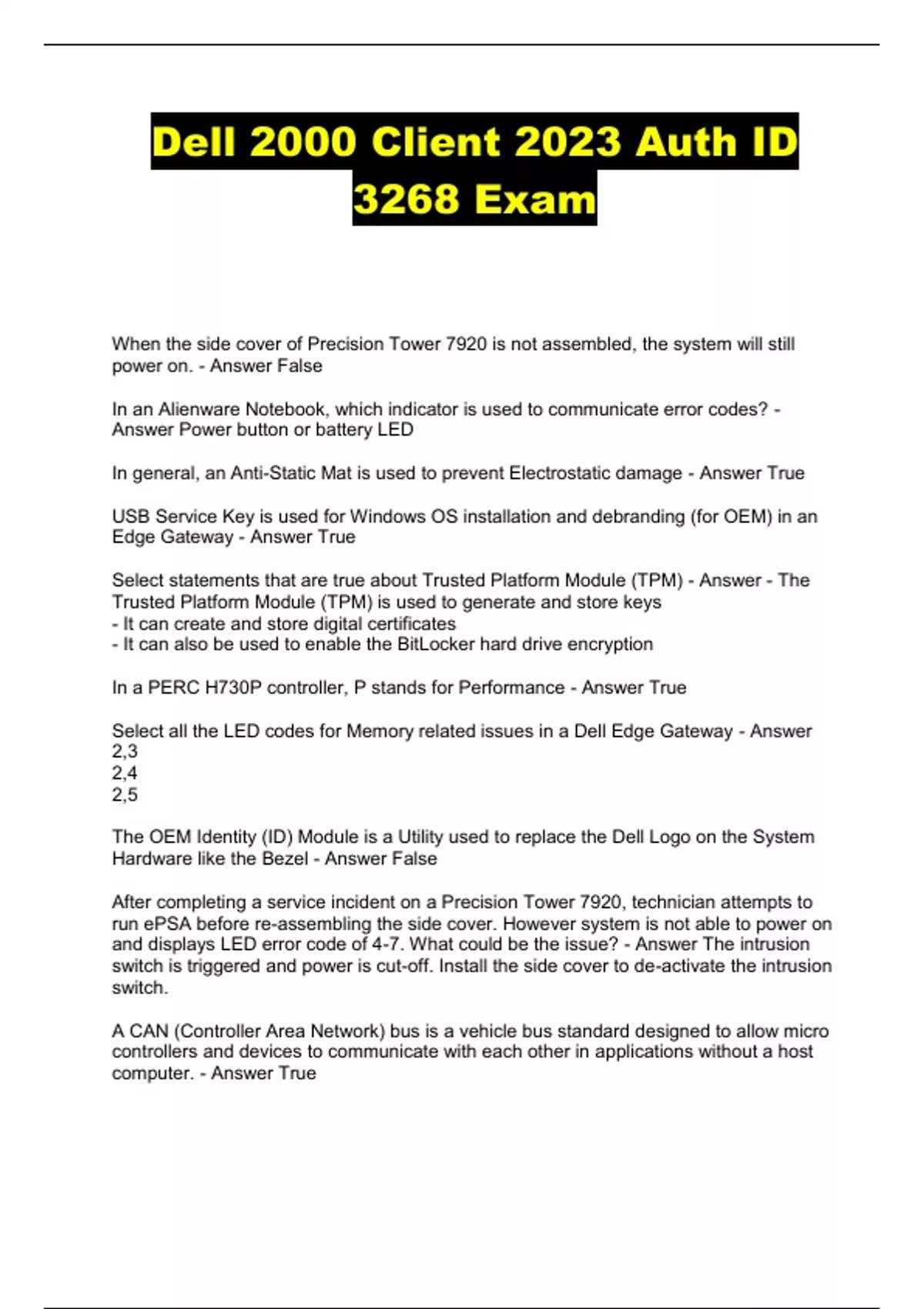 Dell 2000 Client 2023 Auth ID 3268 Exam...