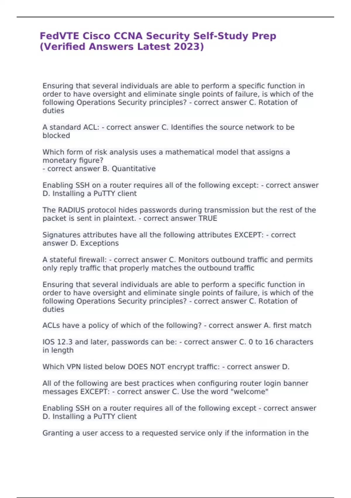 FedVTE Cisco CCNA Security Self-Study Prep (Verified Answers Latest 2023)
