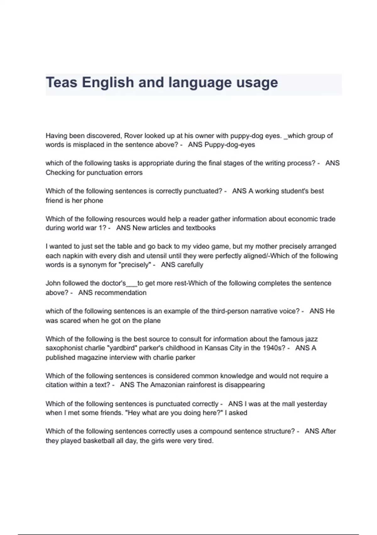 teas english and language usage questions amp answer