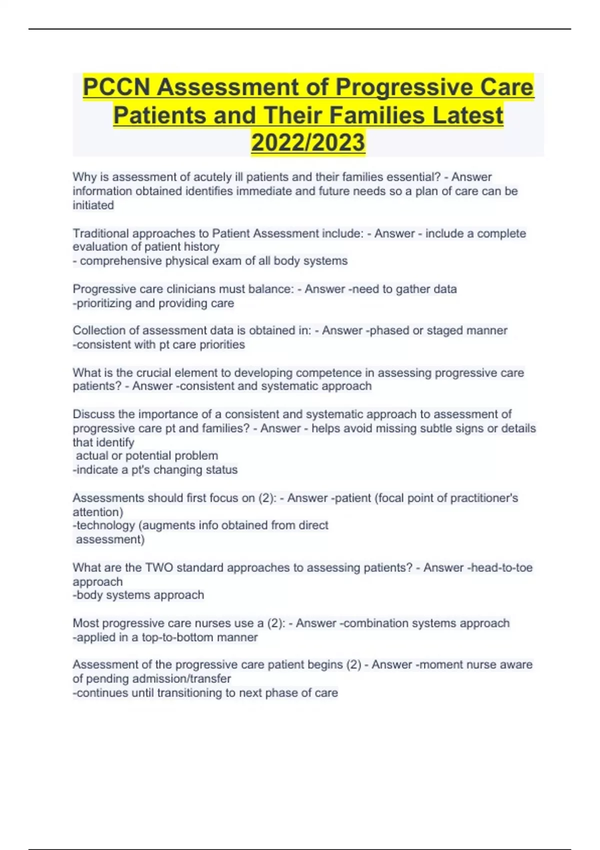 PCCN Assessment of Progressive Care Patients and Their Families Latest 2022/2023