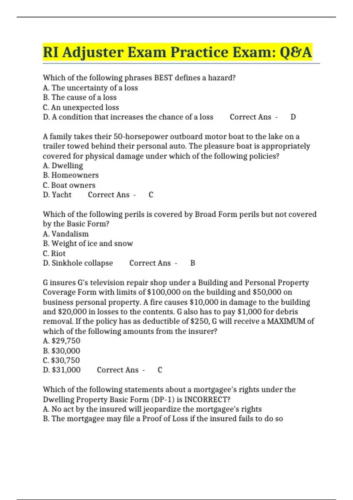 RI Adjuster Exam Practice Exam: Q&A