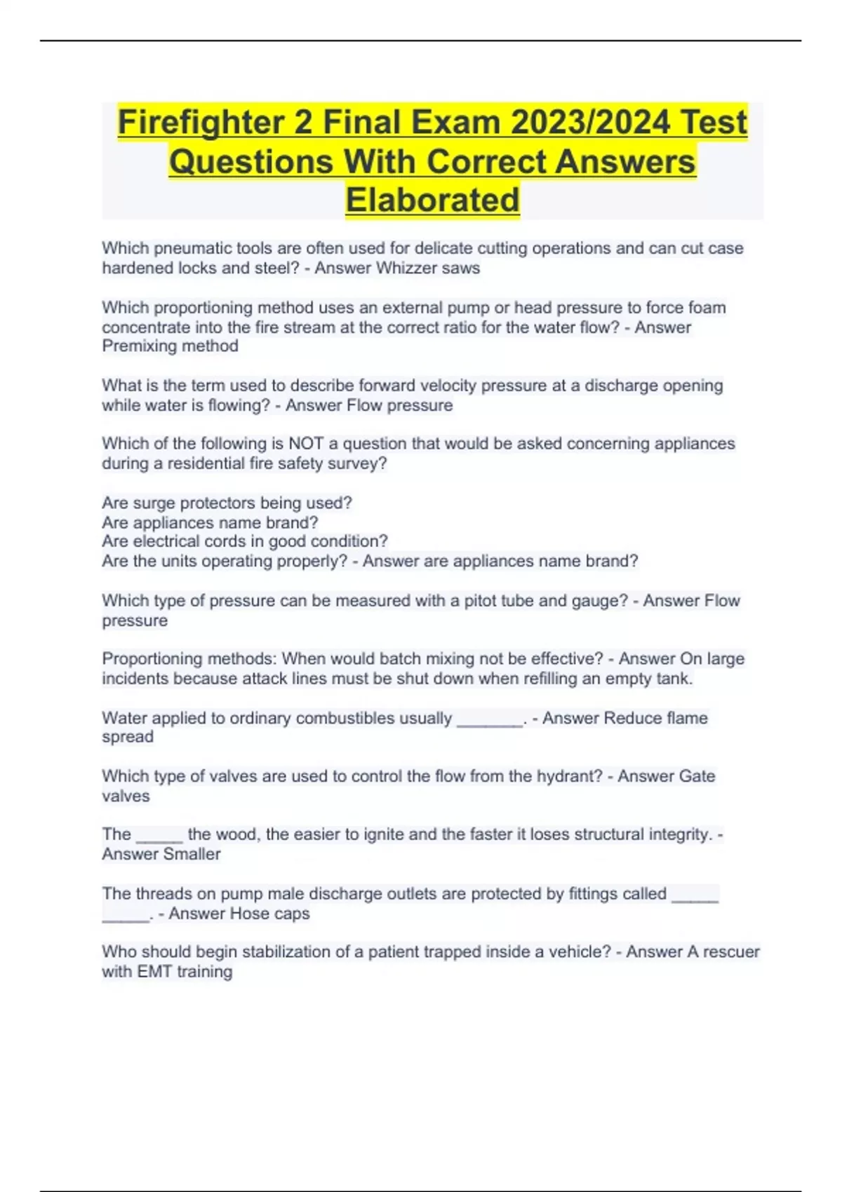 Firefighter 2 Final Exam 2023/2024 Test Questions With Correct Answers Elaborated