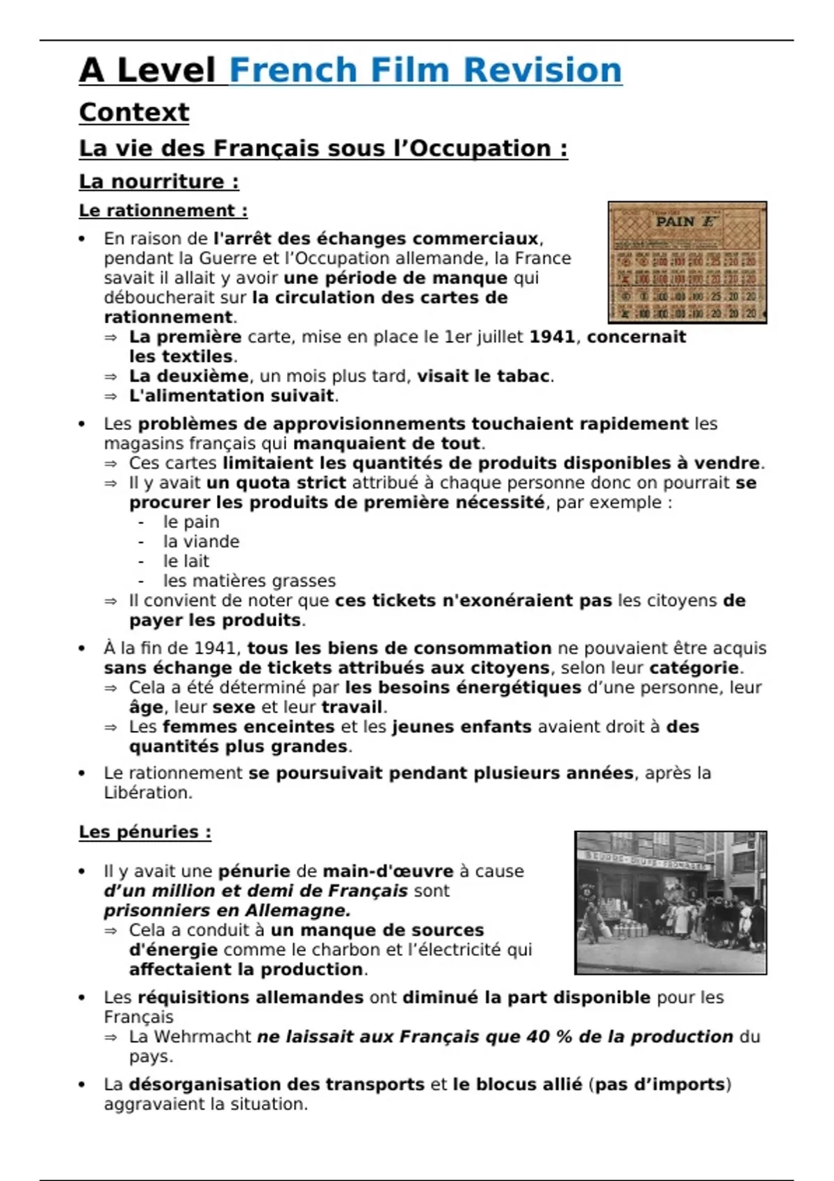 La vie des Français sous l’Occupation :