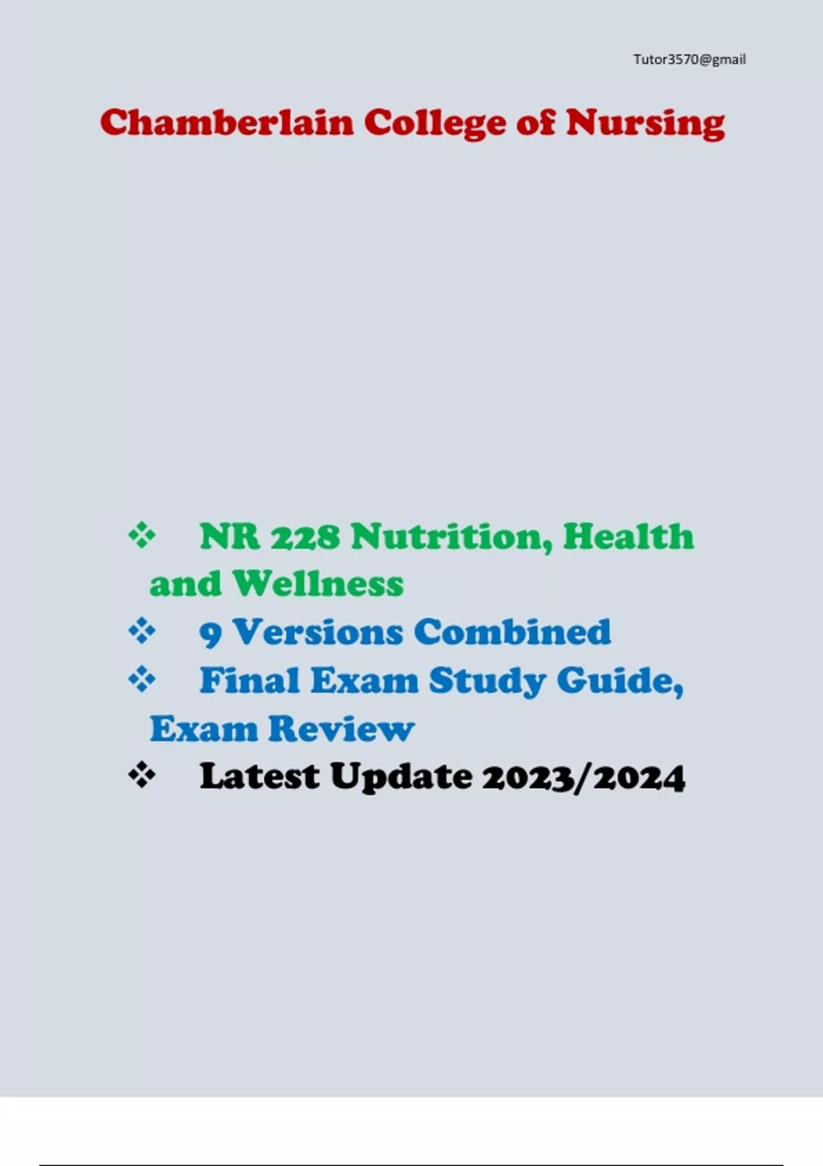 NR 228 Final Exam () 9 Versions Combined Complete Guide (Chamberlain College of Nursing)