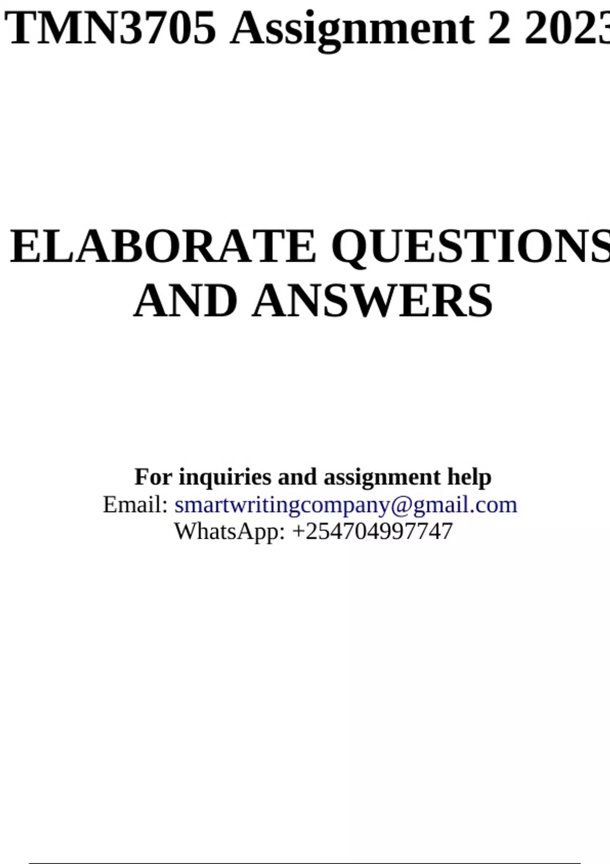 TMN3705 Assignment 2 2023 - DISTINCTION