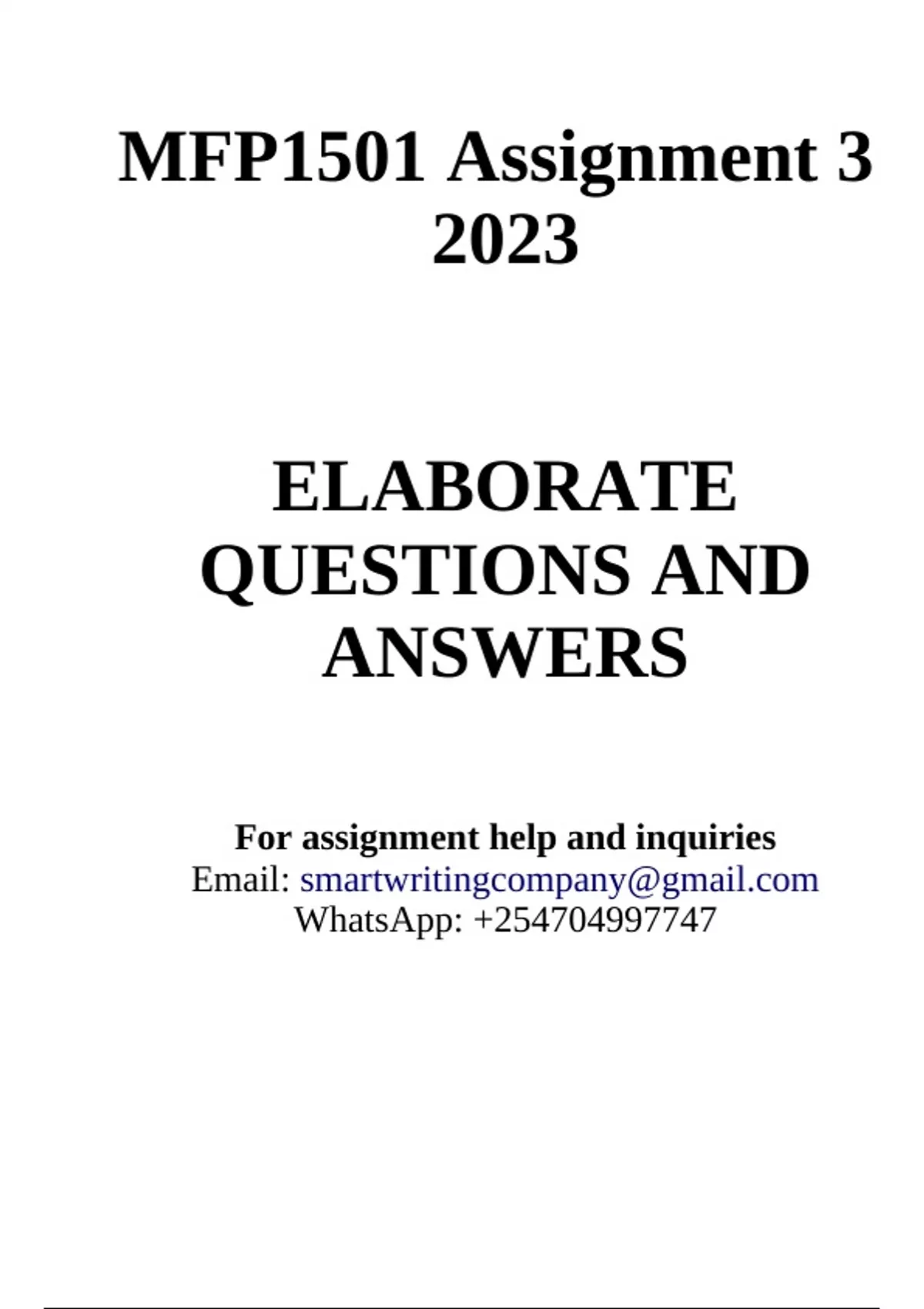MFP1501 Assignment 3 2023 - DISTINCTION