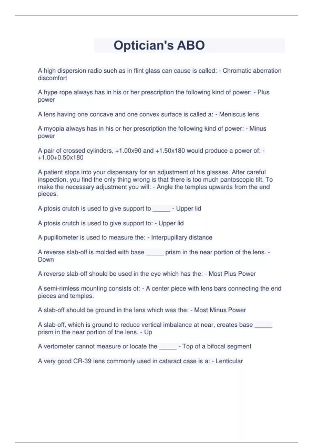 Optician's ABO