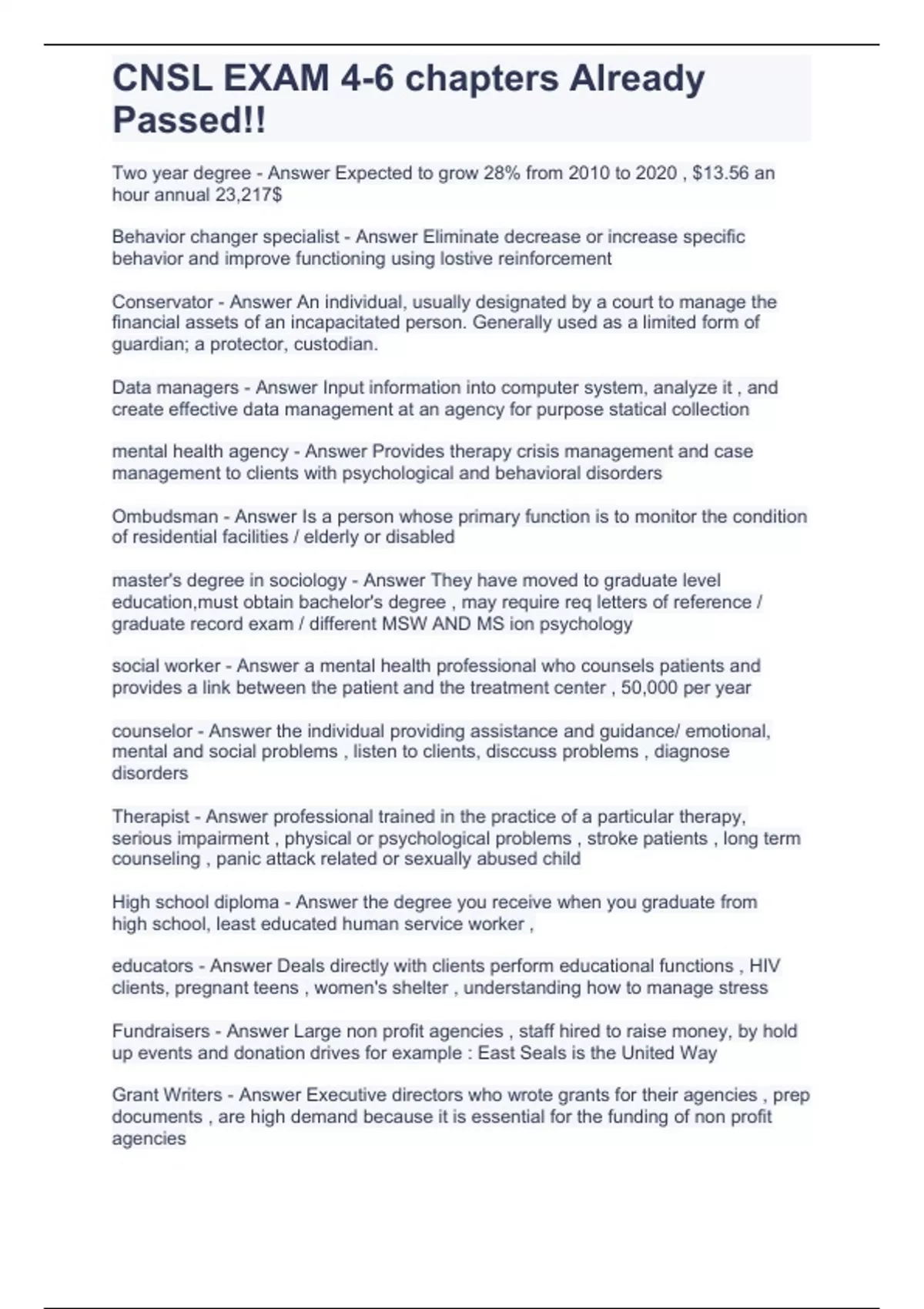 CNSL EXAM 4-6 chapters Already Passed!!