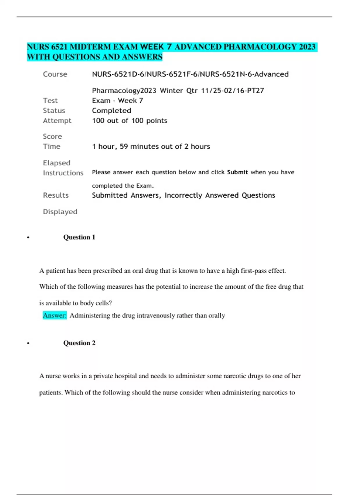 NURS 6521 MIDTERM EXAM WEEK 7 ADVANCED PHARMACOLOGY 2023 WITH QUESTIONS AND ANSWERS