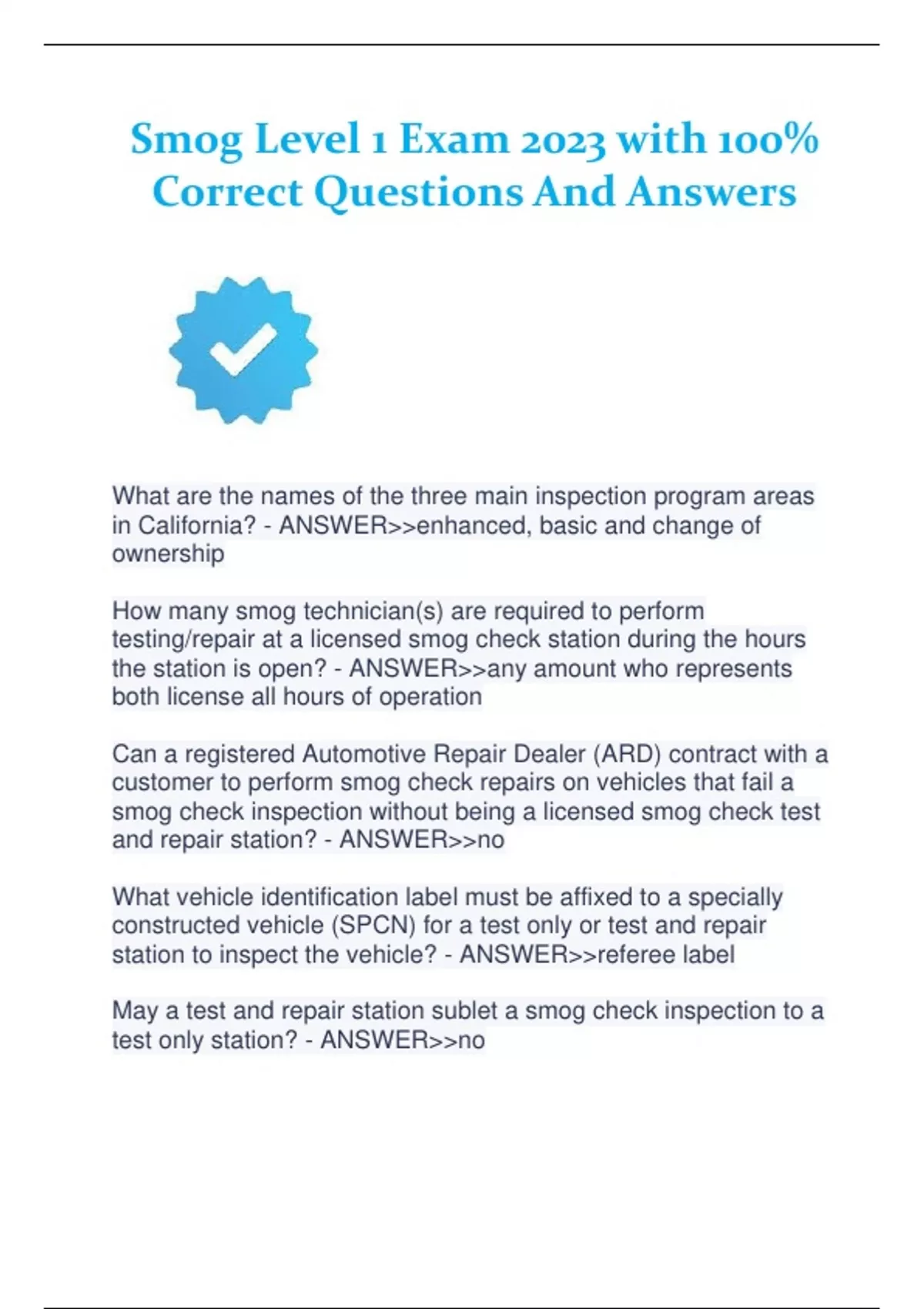 Smog Level 1 Exam 2023 with 100% Correct Questions And Answers