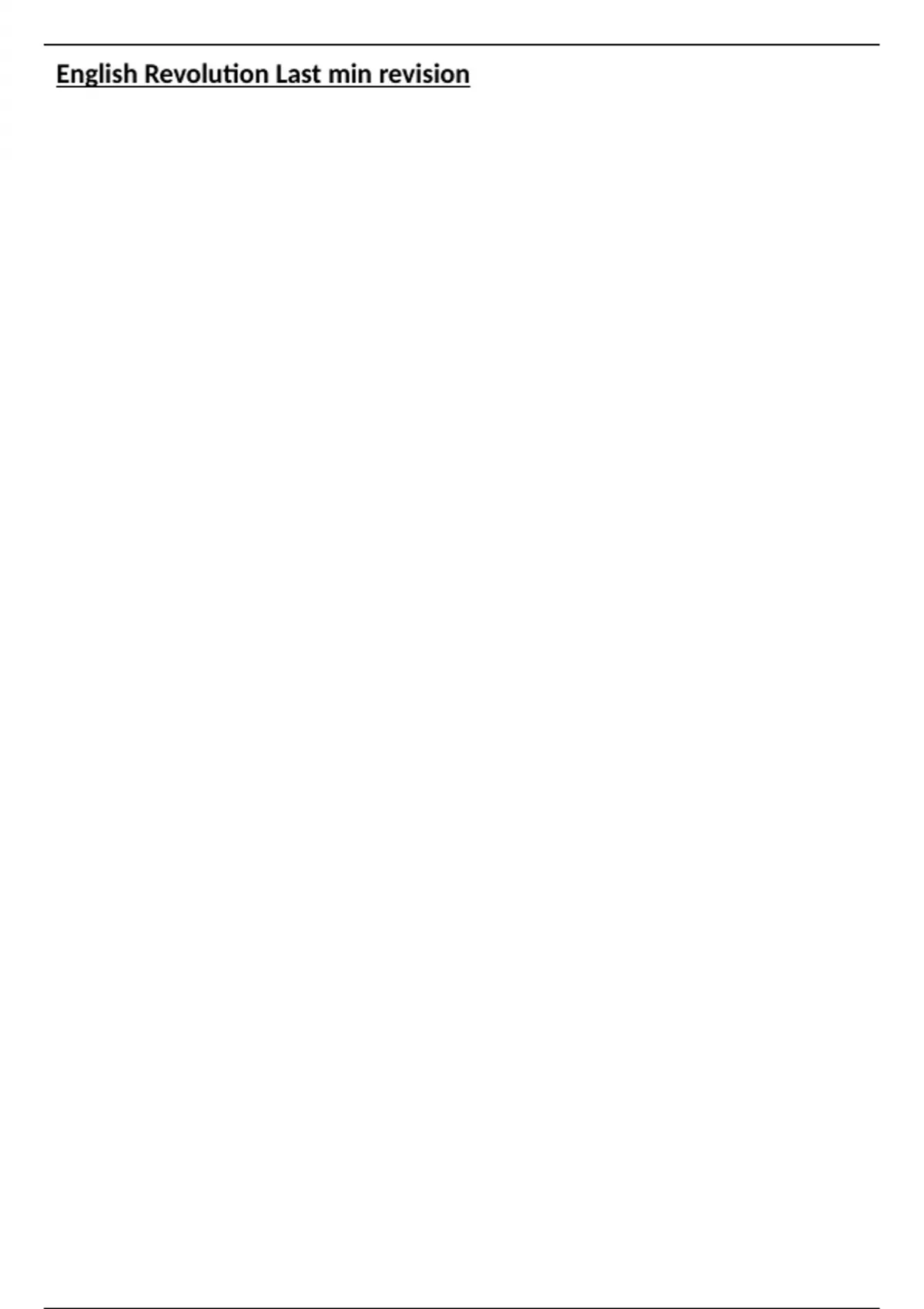 Summary History A level (AQA) Notes - The English Revolution ( 2E)