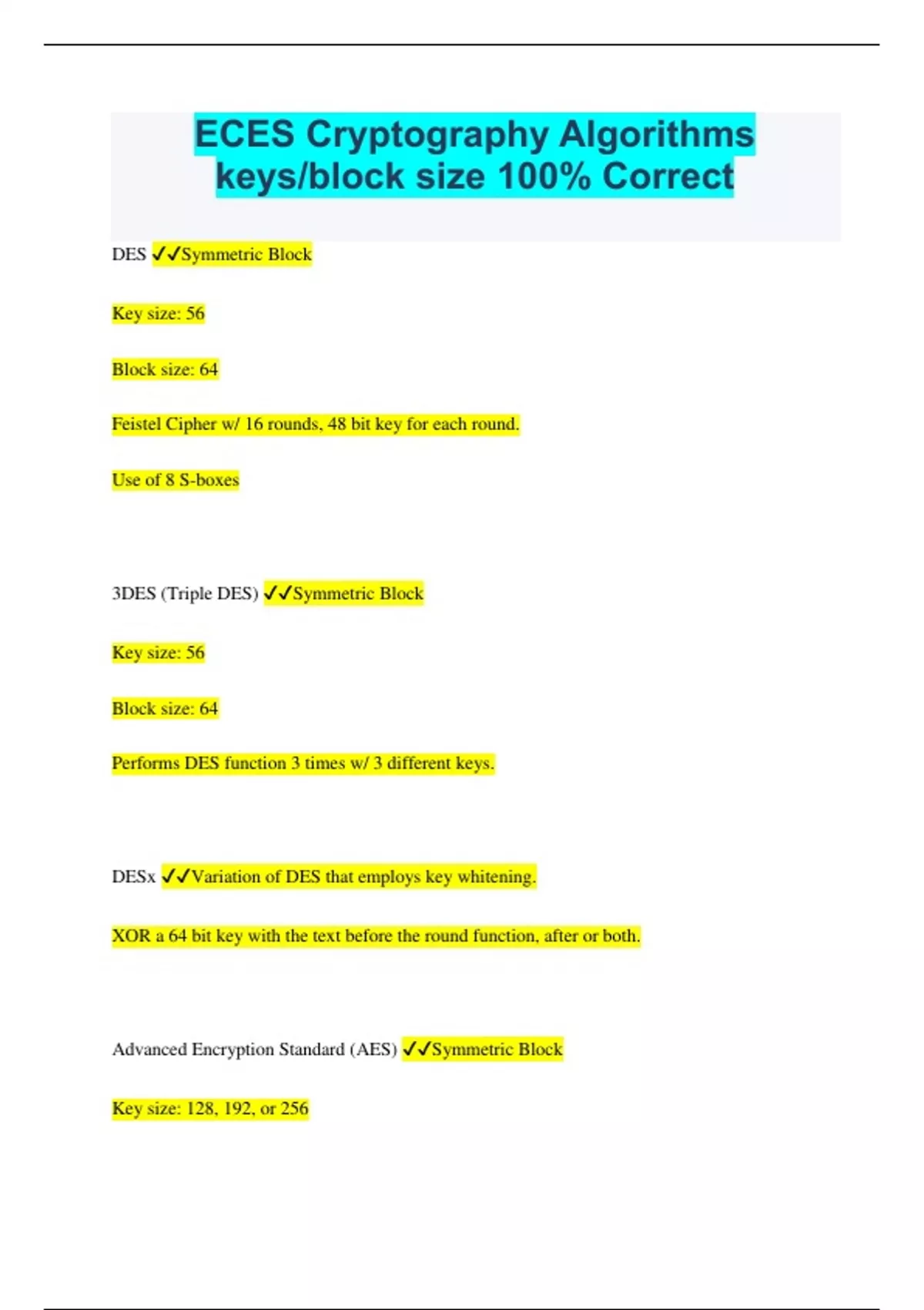 ECES Cryptography Algorithms keys/block size 100% Correct