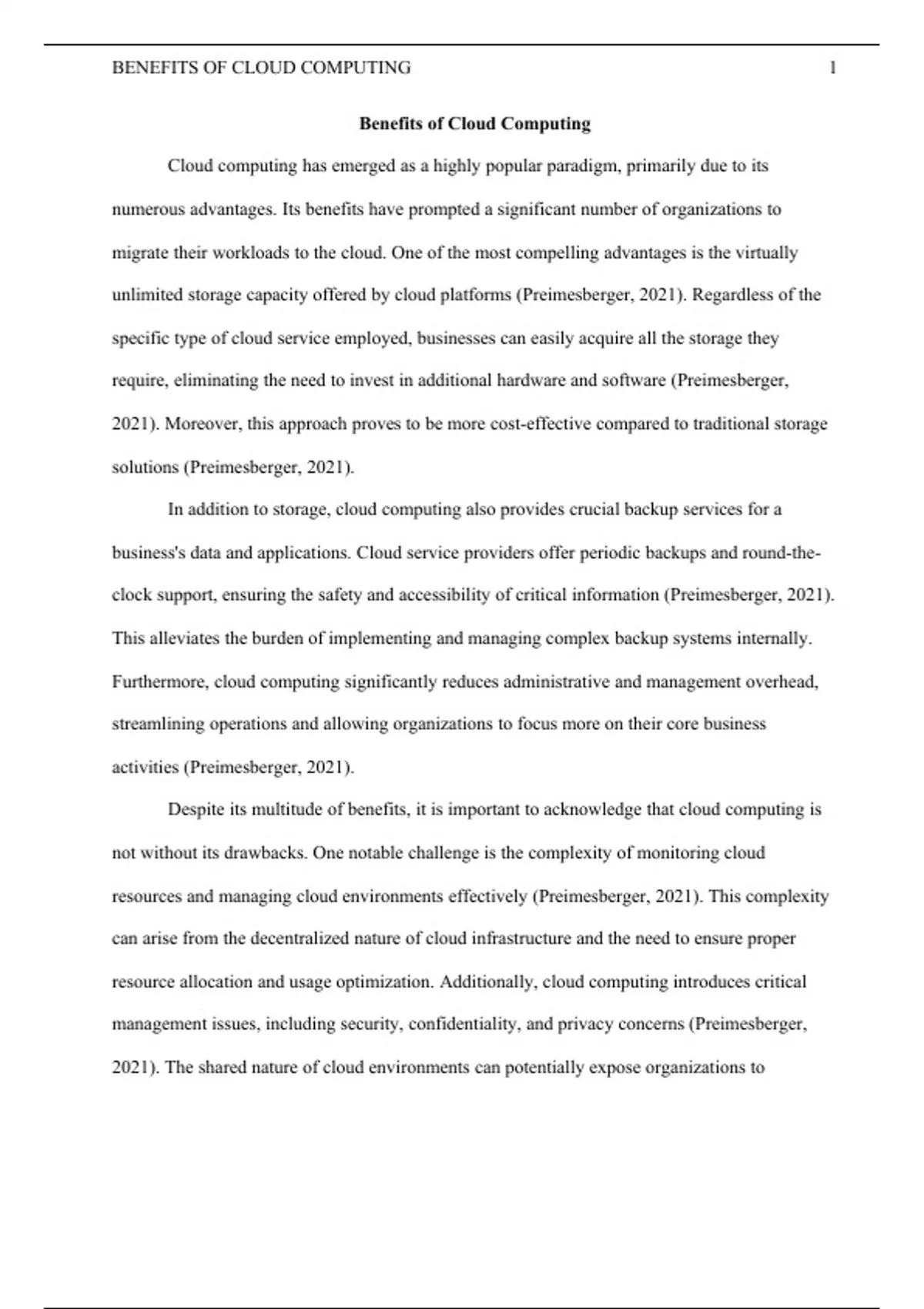 BENEFITS OF CLOUD COMPUTING 1