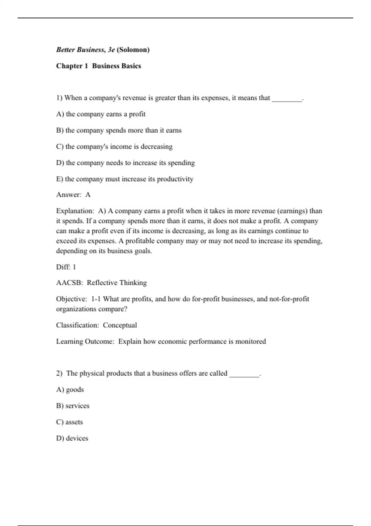 Explanation: A) By definition, physical products that a business offers are called goods.
