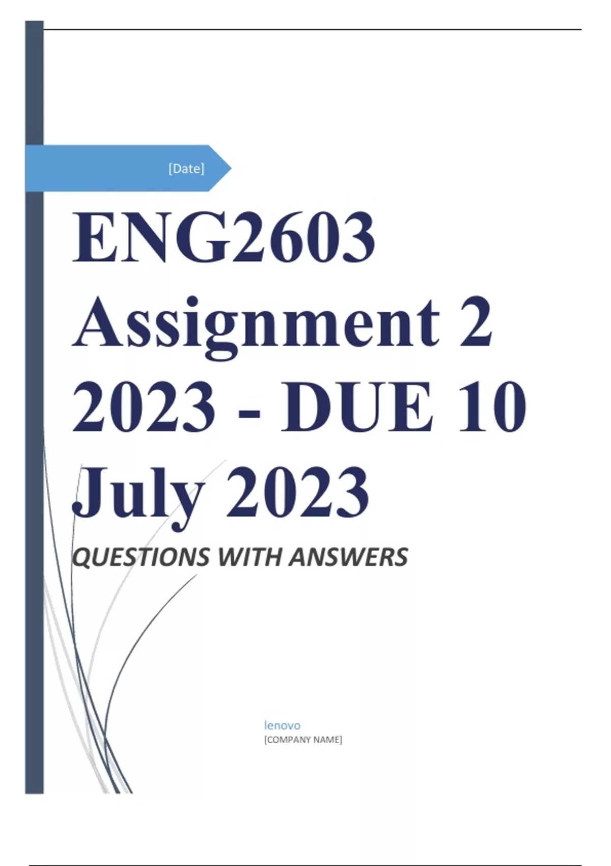 , ENG2603 Assignment 2 2023 - DUE 10 July 2023