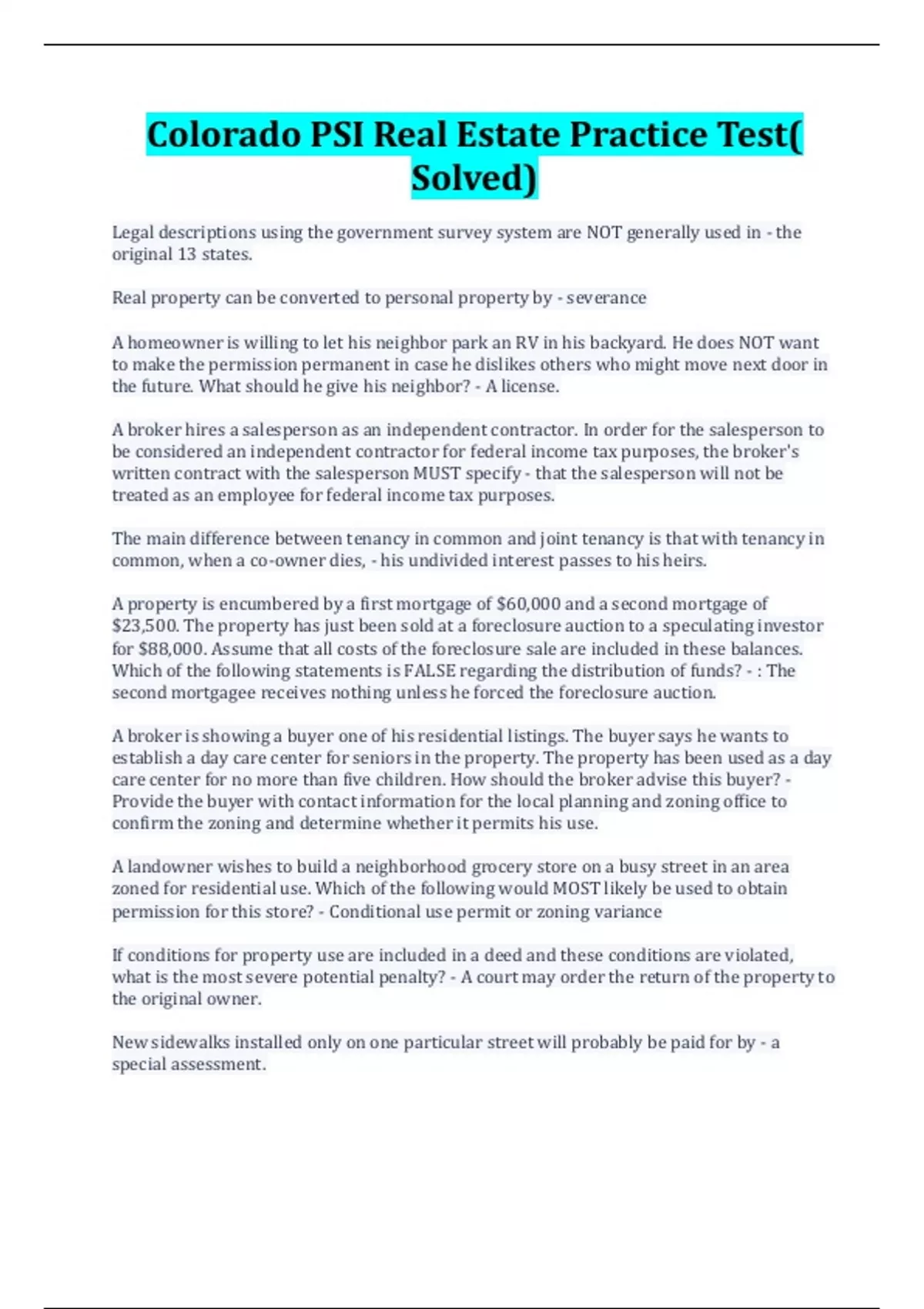 COLARADO REAL ESTATE EXAMS PACKAGE DEAL