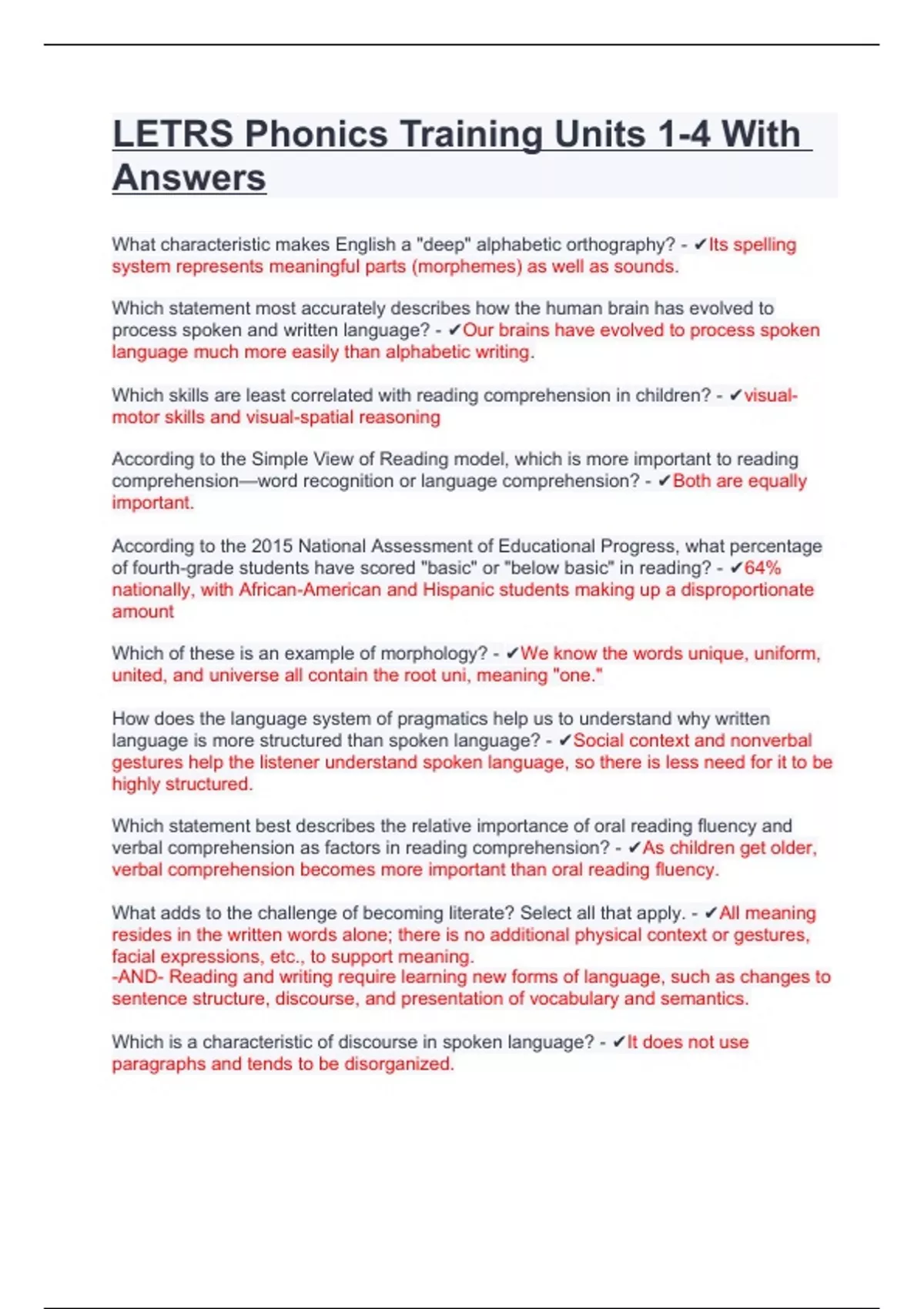 LETRS Phonics Training Units 1-4 With Answers.