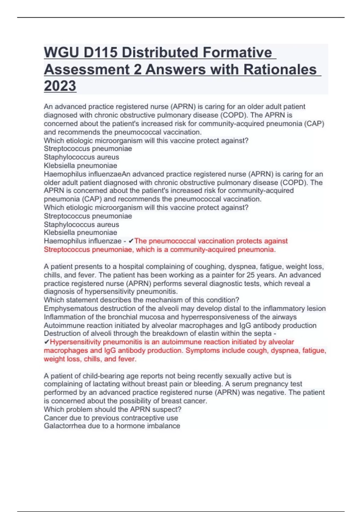 WGU D115 Distributed Formative Assessment 2 Answers with Rationales 2023.