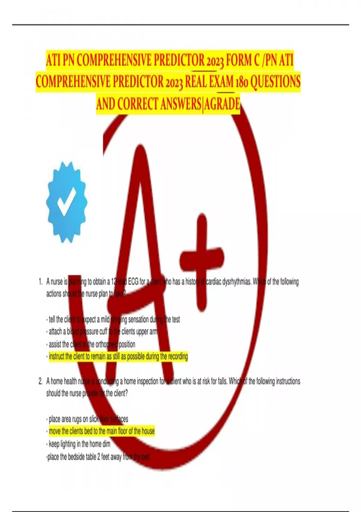 ATI PN COMPREHENSIVE PREDICTOR 2023 FORM C /PN ATI COMPREHENSIVE PREDICTOR 2023 REAL EXAM 180 QUESTIONS AND CORRECT ANSWERS|AGRADE