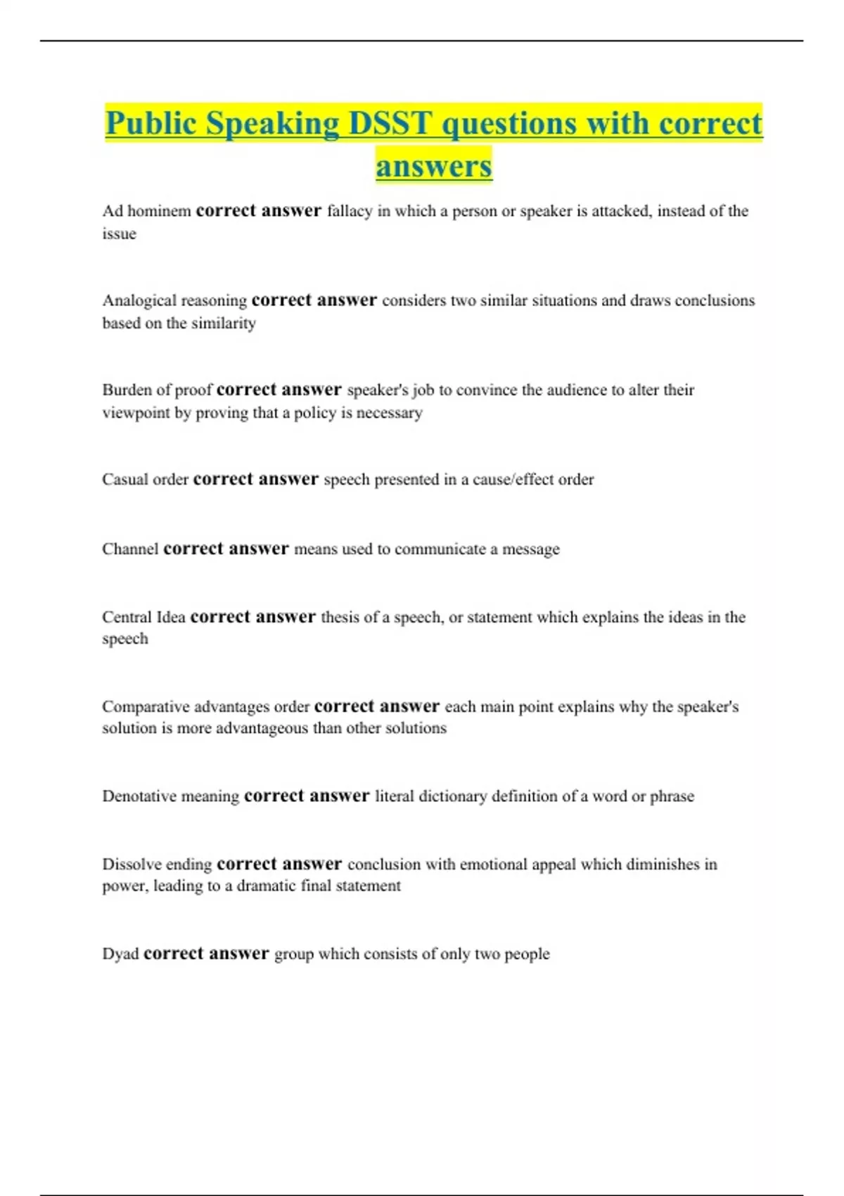 Public Speaking DSST questions with correct answers