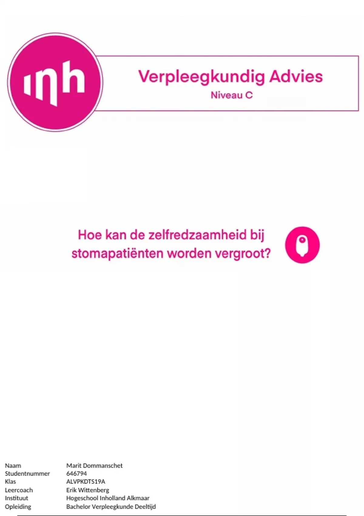 Titel werkstuk Verpleegkundig Advies Niveau C