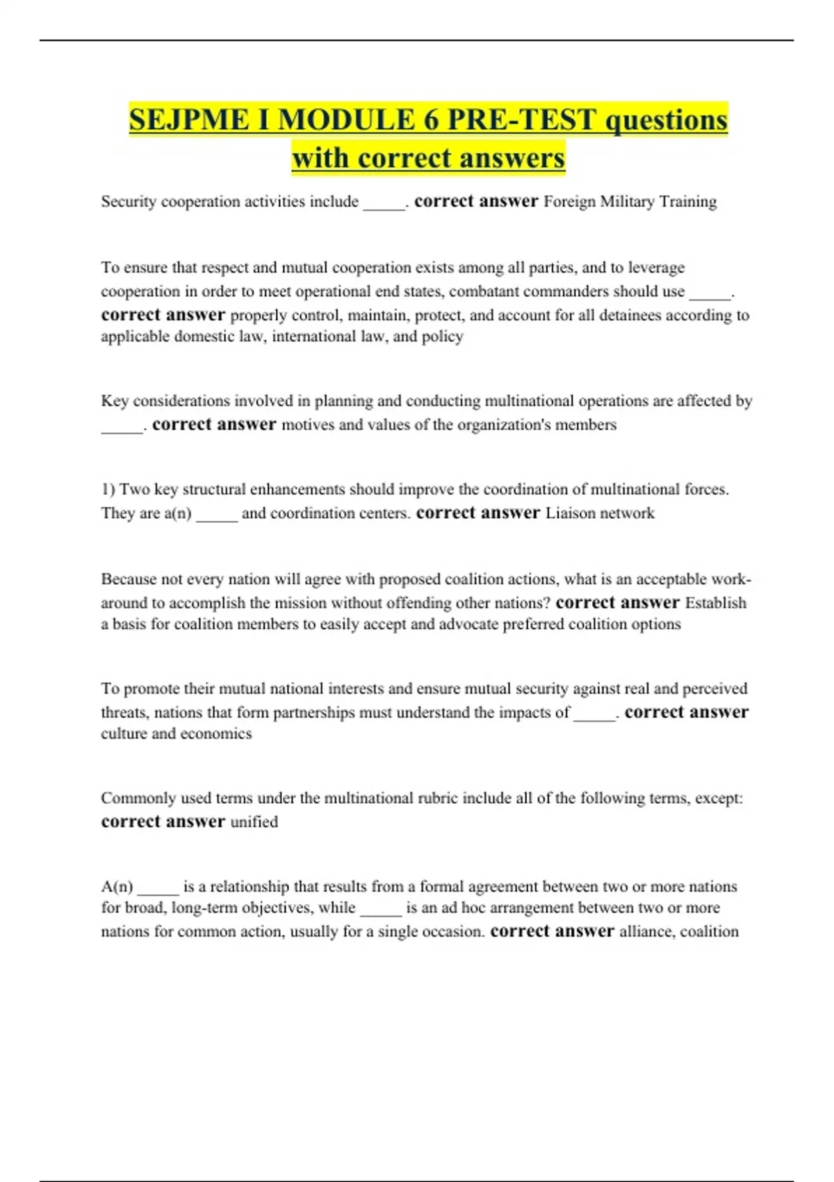 SEJPME I MODULE 6 PRE-TEST questions with correct answers