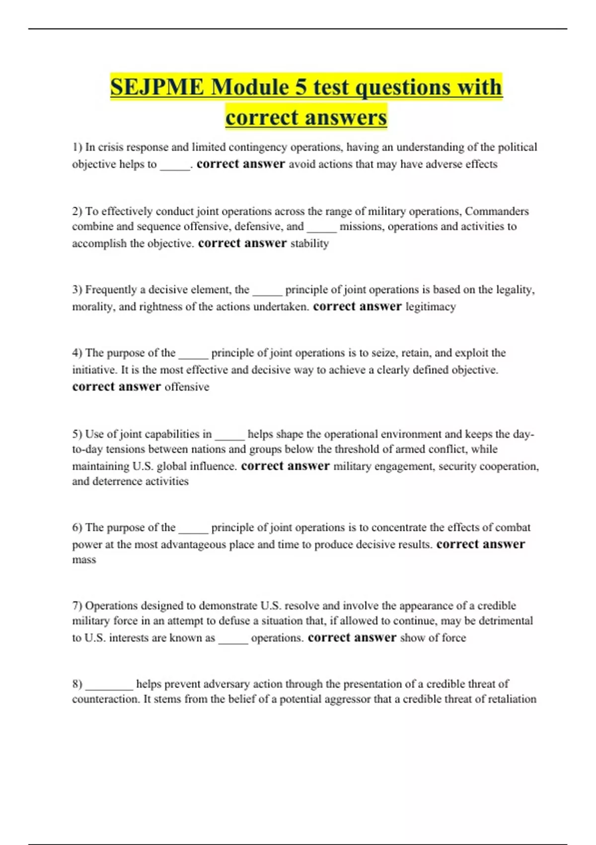 Senior Enlisted Joint Professional Military Education (SEJPME) Tests Bundle Set