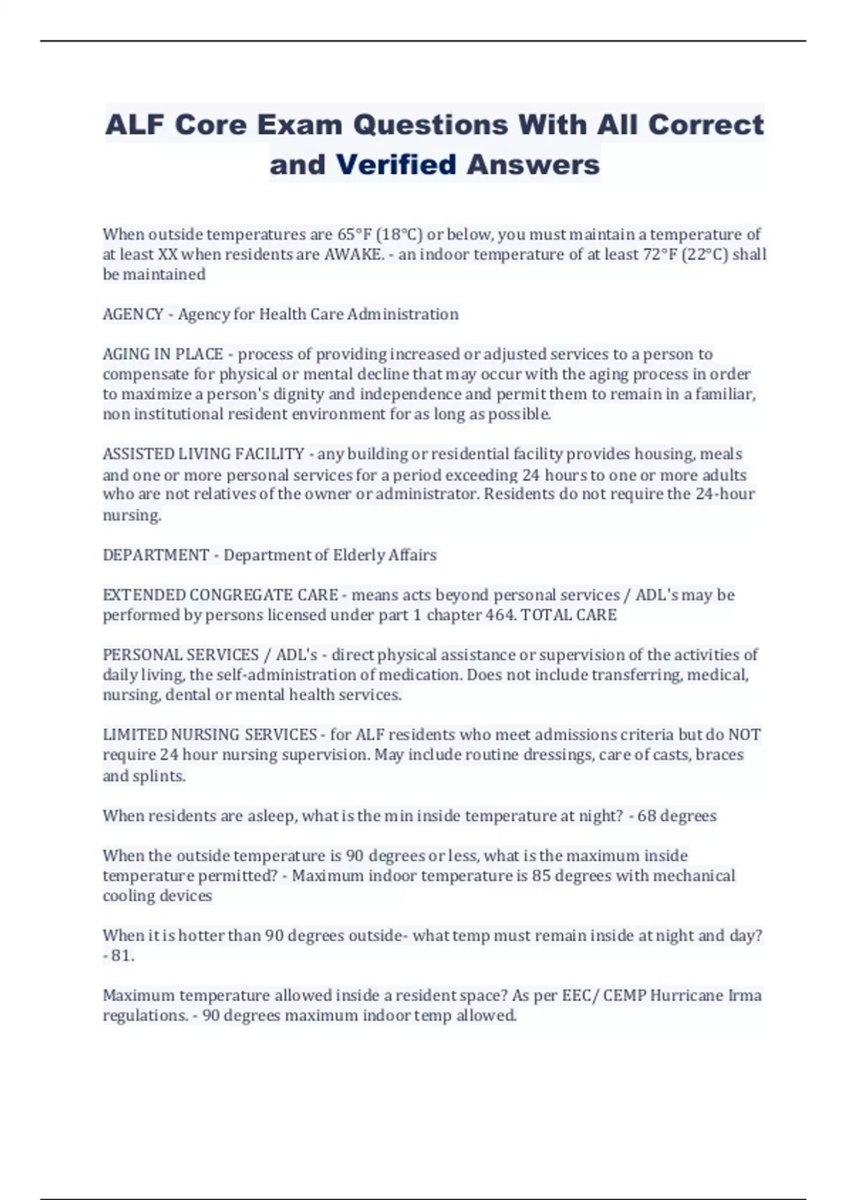ALF Core Exam Questions With All Correct