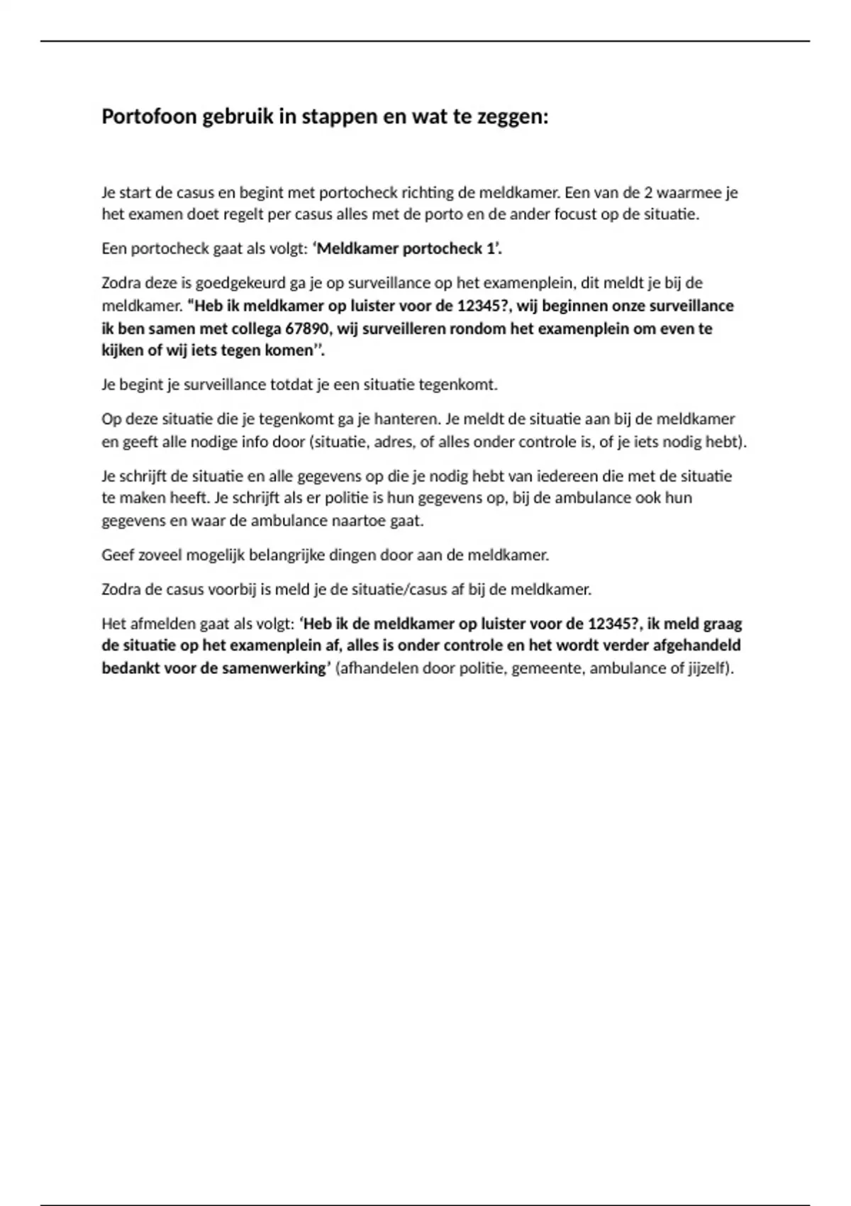 Het afmelden gaat als volgt: ‘Heb ik de meldkamer op luister voor de 12345?, ik meld graag