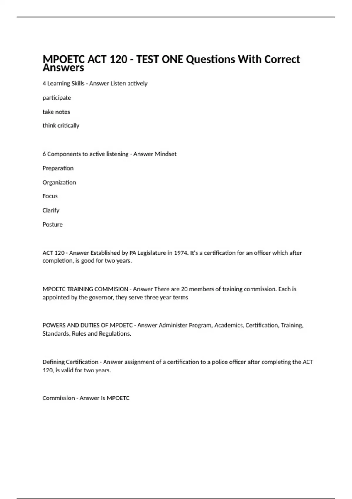 - mpoetc act 120 test one