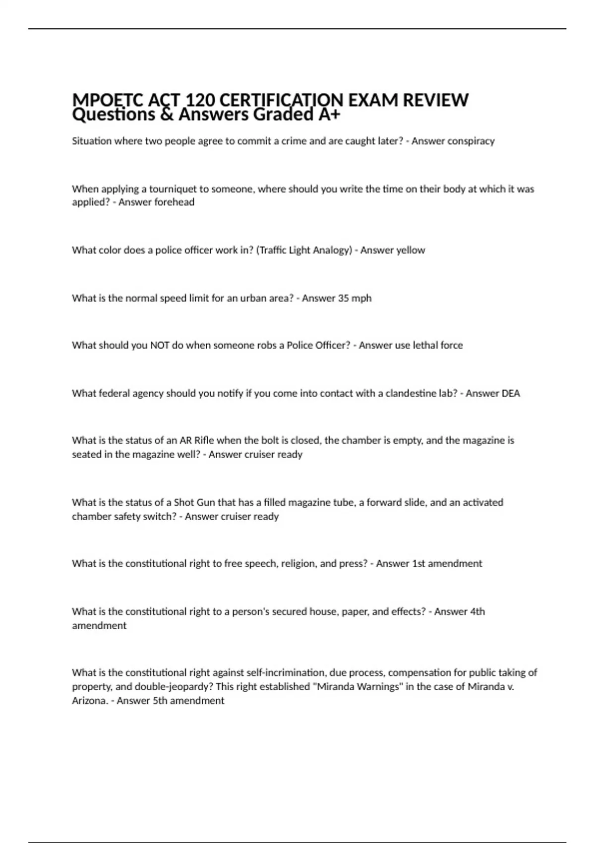 MPOETC ACT 120 CERTIFICATION EXAM REVIEW Questions & Answers Graded A+