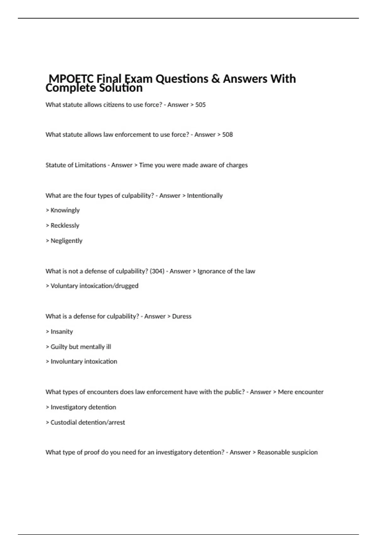 MPOETC Final Exam Questions & Answers With Complete Solution